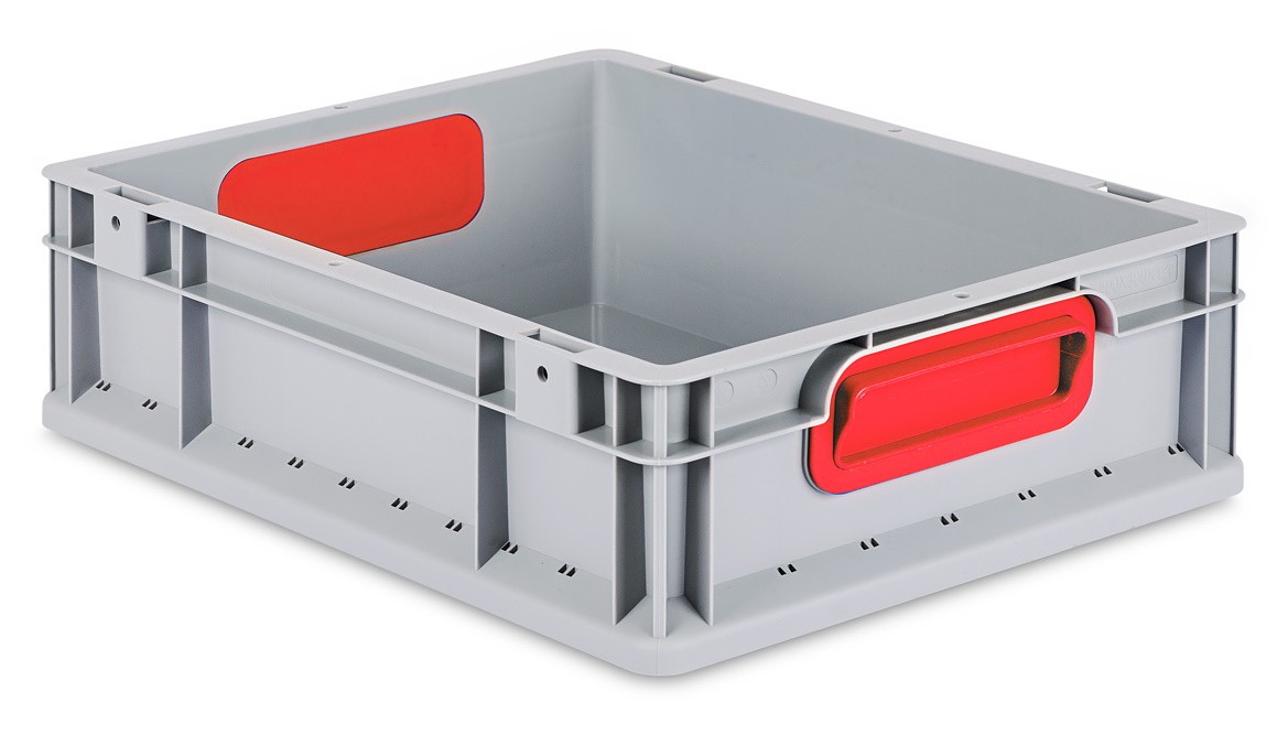 Unsere Euroboxen aus Kunststoff sind ideal für Transport, Aufbewahrung und Lagerung verschiedenster Waren. Unsere Euroboxen sind als Palettenboxen verwendbar und damit stabil und sicher auf jeder Palette mit Euronorm stapelbar. Der umlaufende Stapelrand wirkt selbstzentrierend und sorgt für einen sicheren Stand der Euroboxen. Die Euroboxen lassen sich auch für flexible Regalsysteme nutzen, indem man geschlossene oder offene Boxen übereinander stapelt. Die geschlossenen Griffe können für ein geschlossenen Behälter sorgen der den Inhalt vor Staub und Verschmutzung schützt. Durch das Farbsystem kann eine übersichtliche und schnell auffindbare Lagerung erfolgen. So kann jeder Farbe ein bestimmtes Lagergut zugeordnet werden. Dies ermöglicht ein schnelles Auffinden und eine schnelle Entnahme aus den Euroboxen. Durch die Euroboxen mit Farbsystem kann so die Effizienz gesteigert werden.