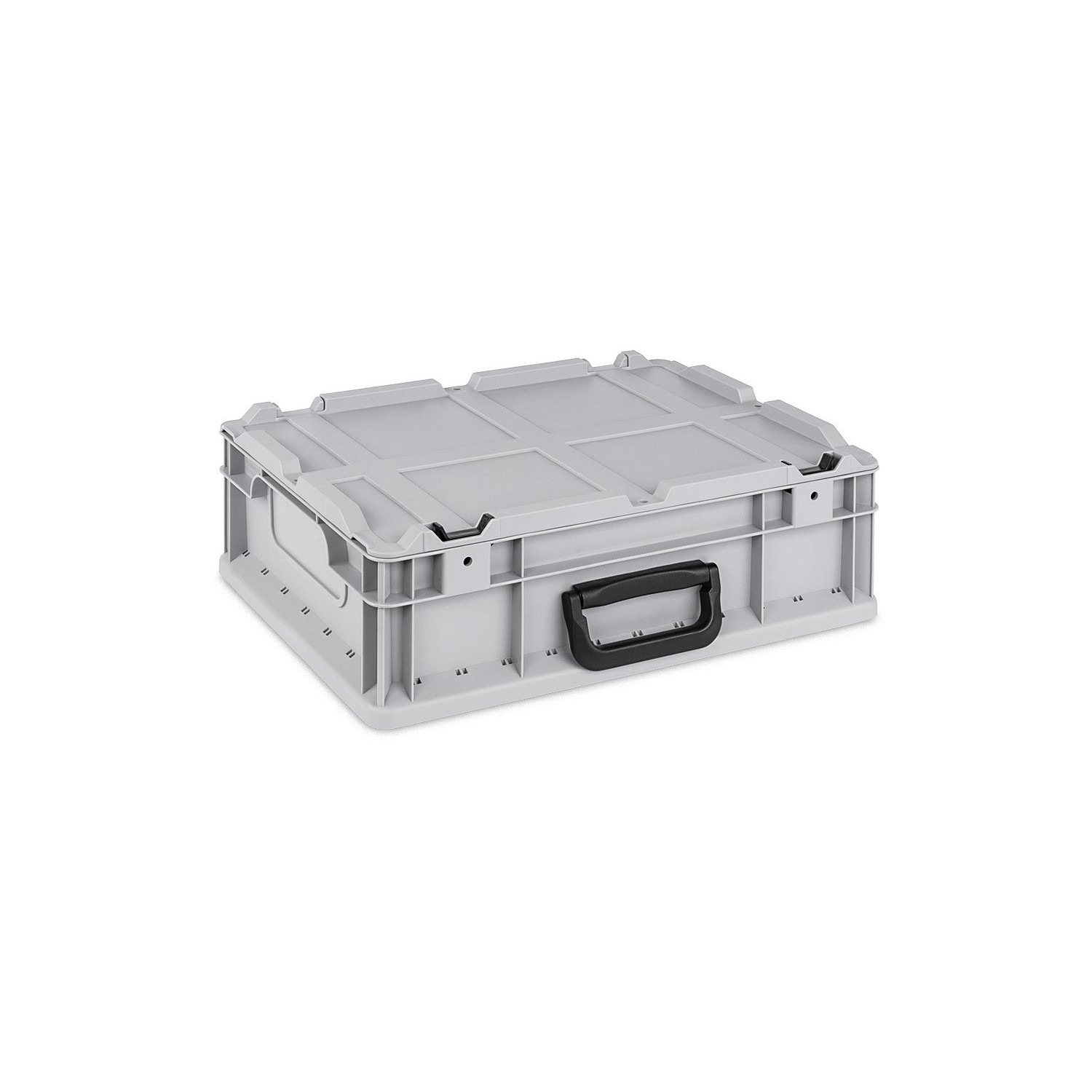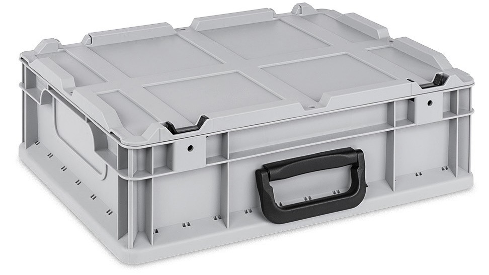 Die Euroboxen NextGen Portable sind mit einem Koffergirff und einem Deckel ausgestattet. Die Eurokästen mit Koffergriff können so ideal transportiert werden. Durch den Griff lässt sich die Eurobox in einer Hand tragen und zum Beispiel als Werkzeugkoffer nutzen. In der Box sind die gelagerten Inhalte sicher aufbewahrt und vor Verschmutzung geschützt. Unsere Euroboxen aus Kunststoff sind ideal für Transport, Aufbewahrung und Lagerung verschiedenster Waren. Unsere Euroboxen sind als Palettenboxen verwendbar und damit stabil und sicher auf jeder Palette mit Euronorm stapelbar. Der umlaufende Stapelrand wirkt selbstzentrierend und sorgt für einen sicheren Stand der Euroboxen. Die Euroboxen lassen sich auch für flexible Regalsysteme nutzen, indem man geschlossene oder offene Boxen übereinander stapelt.