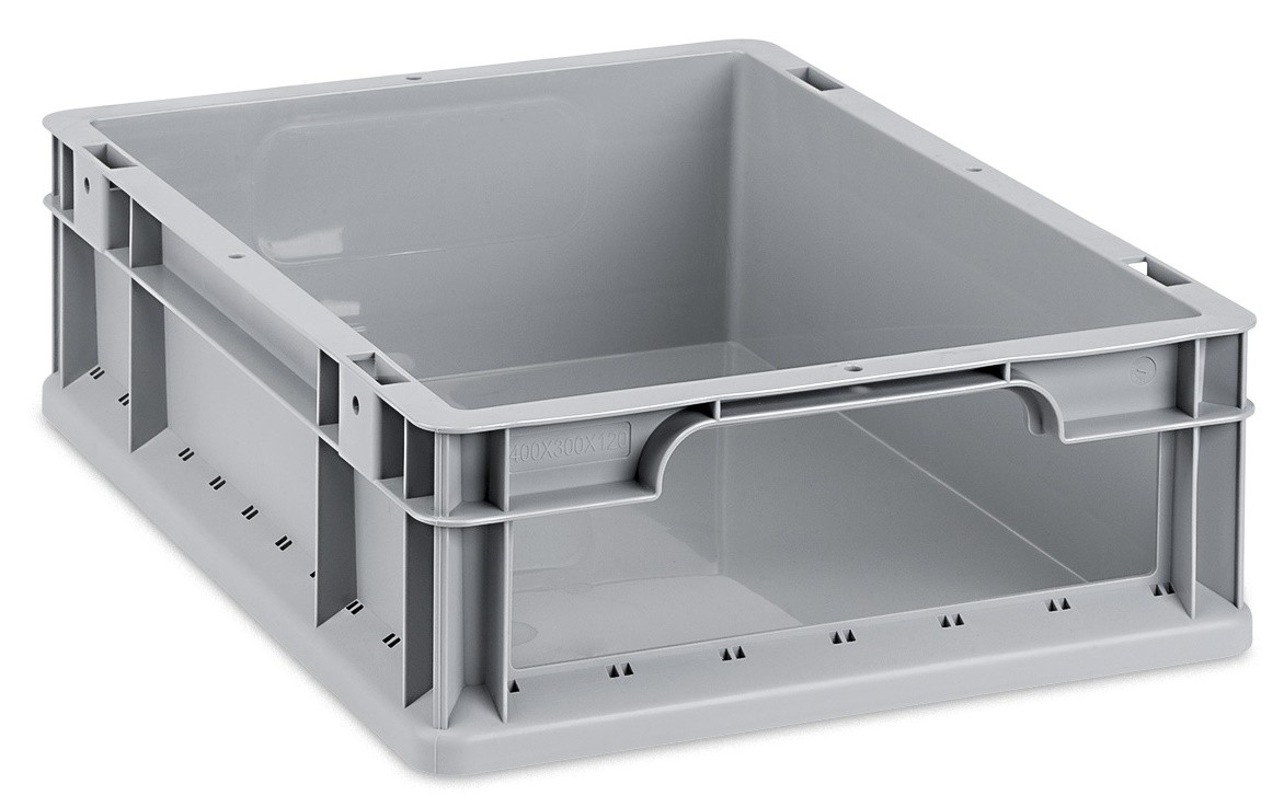 Die Euroboxen Nextgen Store haben eine extra große offene Seite, die eine einfache und schnelle Entnahme errmöglicht. Dazu gibt die Eurobox mit offener Seite einen idealen Überlick über den Inhalt. Die Eurokiste eignen sich besonders für Ladeflächen, da die offene Front den Zugriff erleichtert und die Waren sicher in den Kästen aufbewahrt sind. Die Euroboxen lassen sich sicher stapeln und verbinden, so dass ein Regal aus mehreren Eurokästen entstehen kann. Unsere Euroboxen aus Kunststoff sind ideal für Transport, Aufbewahrung und Lagerung verschiedenster Waren. Unsere Euroboxen sind als Palettenboxen verwendbar und damit stabil und sicher auf jeder Palette mit Euronorm stapelbar. Der umlaufende Stapelrand wirkt selbstzentrierend und sorgt für einen sicheren Stand der Euroboxen. Die Euroboxen lassen sich auch für flexible Regalsysteme nutzen, indem man geschlossene oder offene Boxen übereinander stapelt.