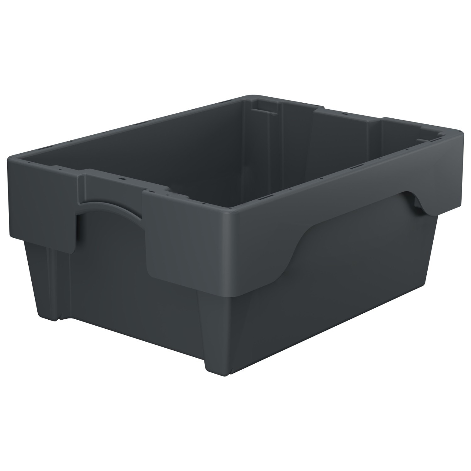 Im leeren Zustand können sie einfach ineinander genestet werden und es kann bis zu 65 % Platzersparniss erreicht werden.