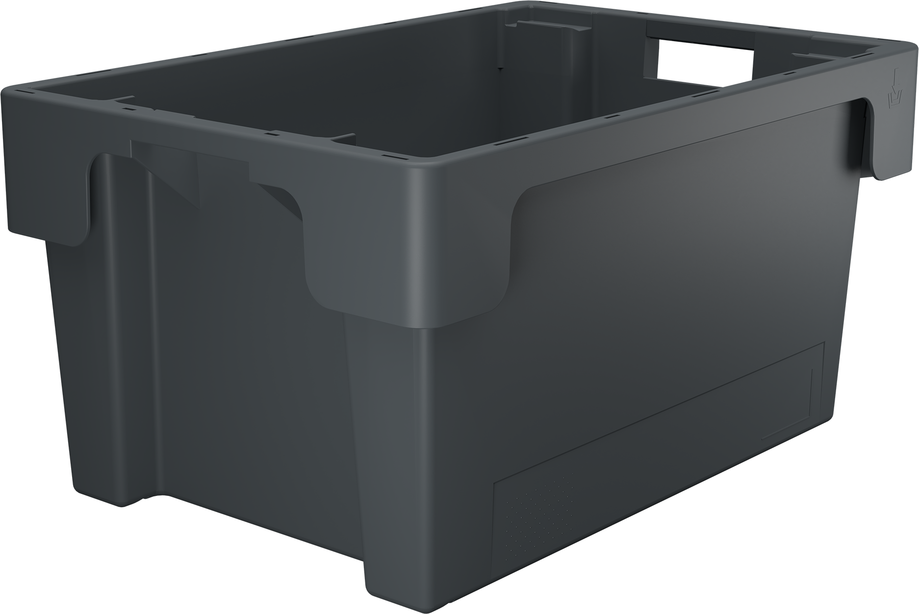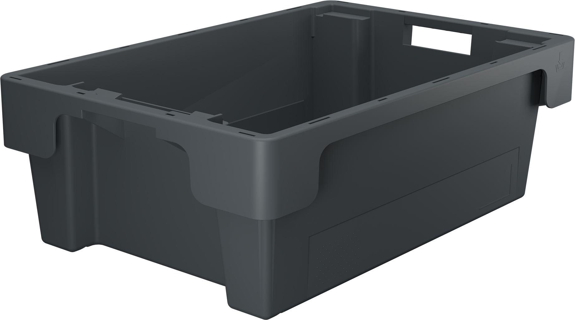 - Die Drehstapelbehälter können befüllt gestapelt und platzsparend genestet werden