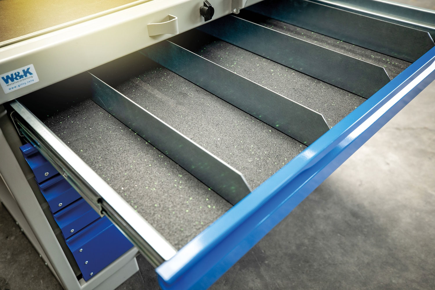 • Mit den Facheinteilern können die Schubladen der SGB System-Gitterboxen für eine ordentliche und sortierte Lagerung eingeteilt werden