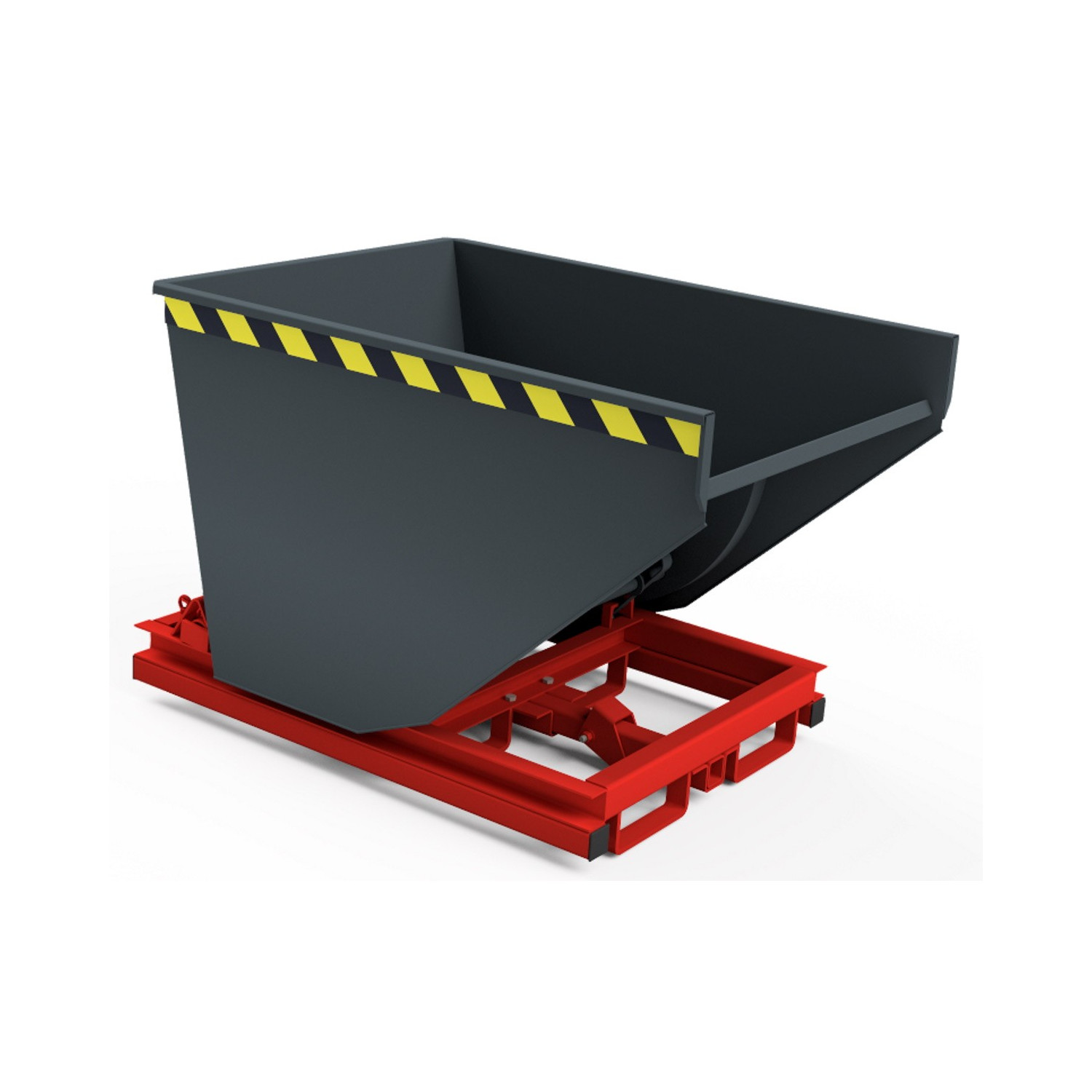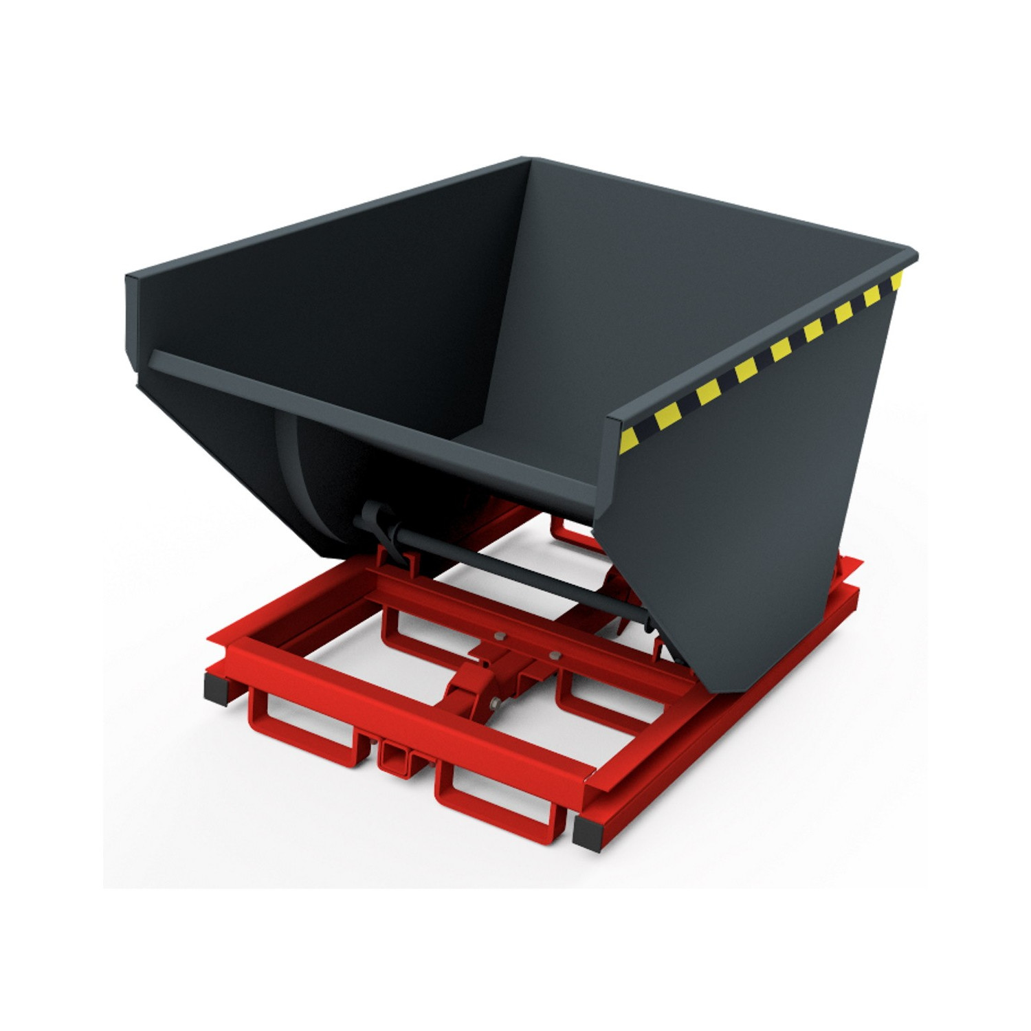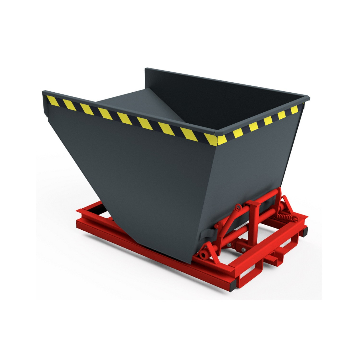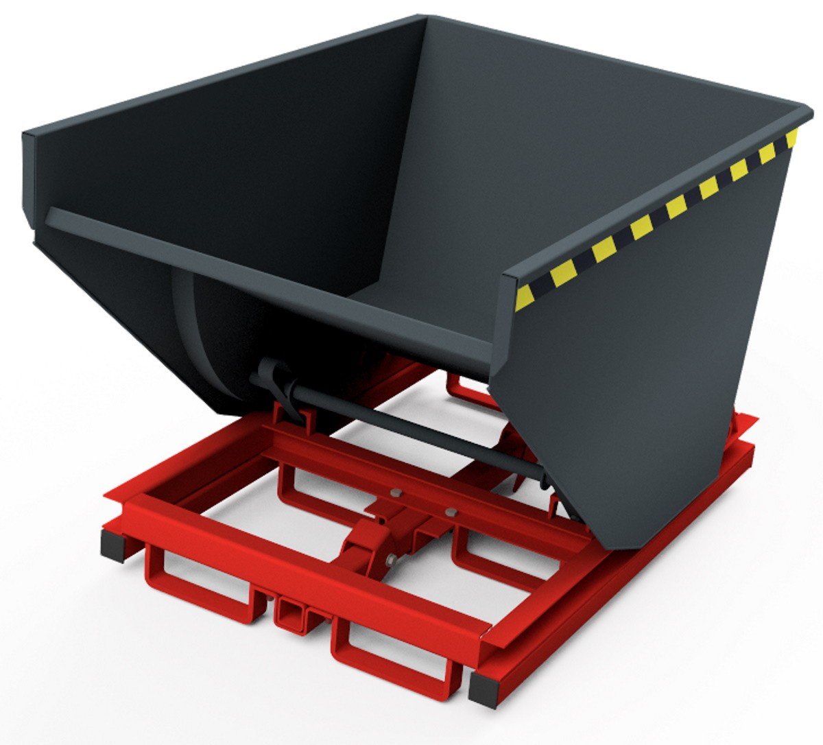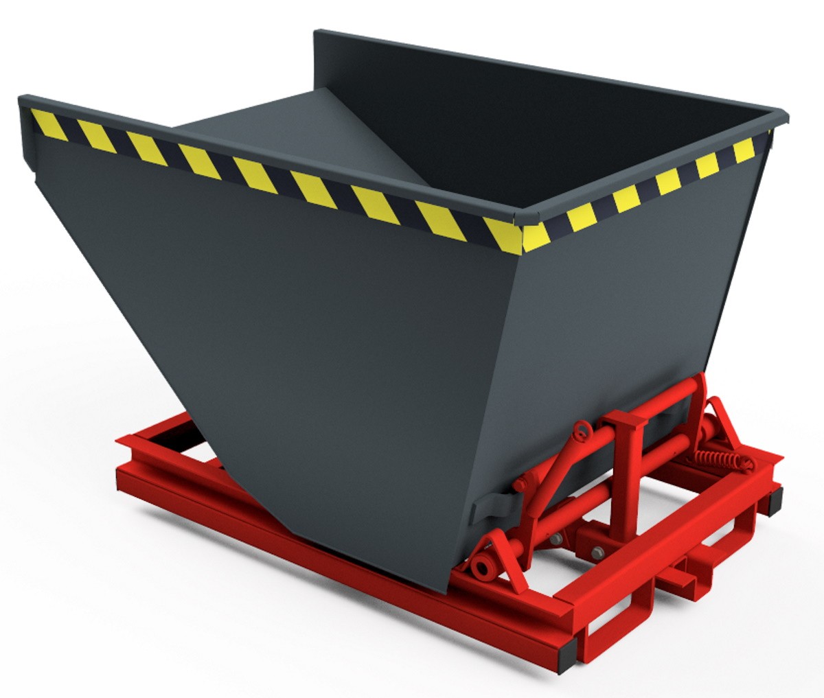 - Abfangbremse mittels Federschere zwischen Behälterboden und Traggestell (fängt die Kippmulde nach circa 90° Drehung ab)