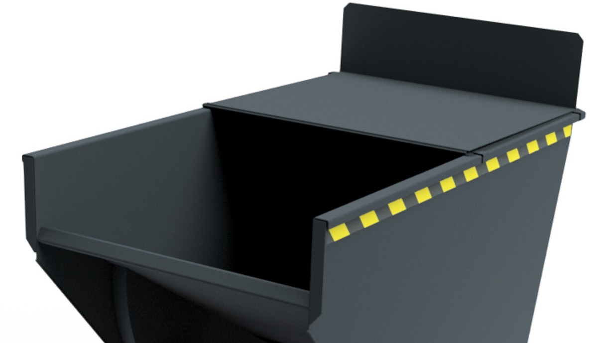 - Der Deckel kann an vorhandenen Kippbehältern nachgerüstet werden