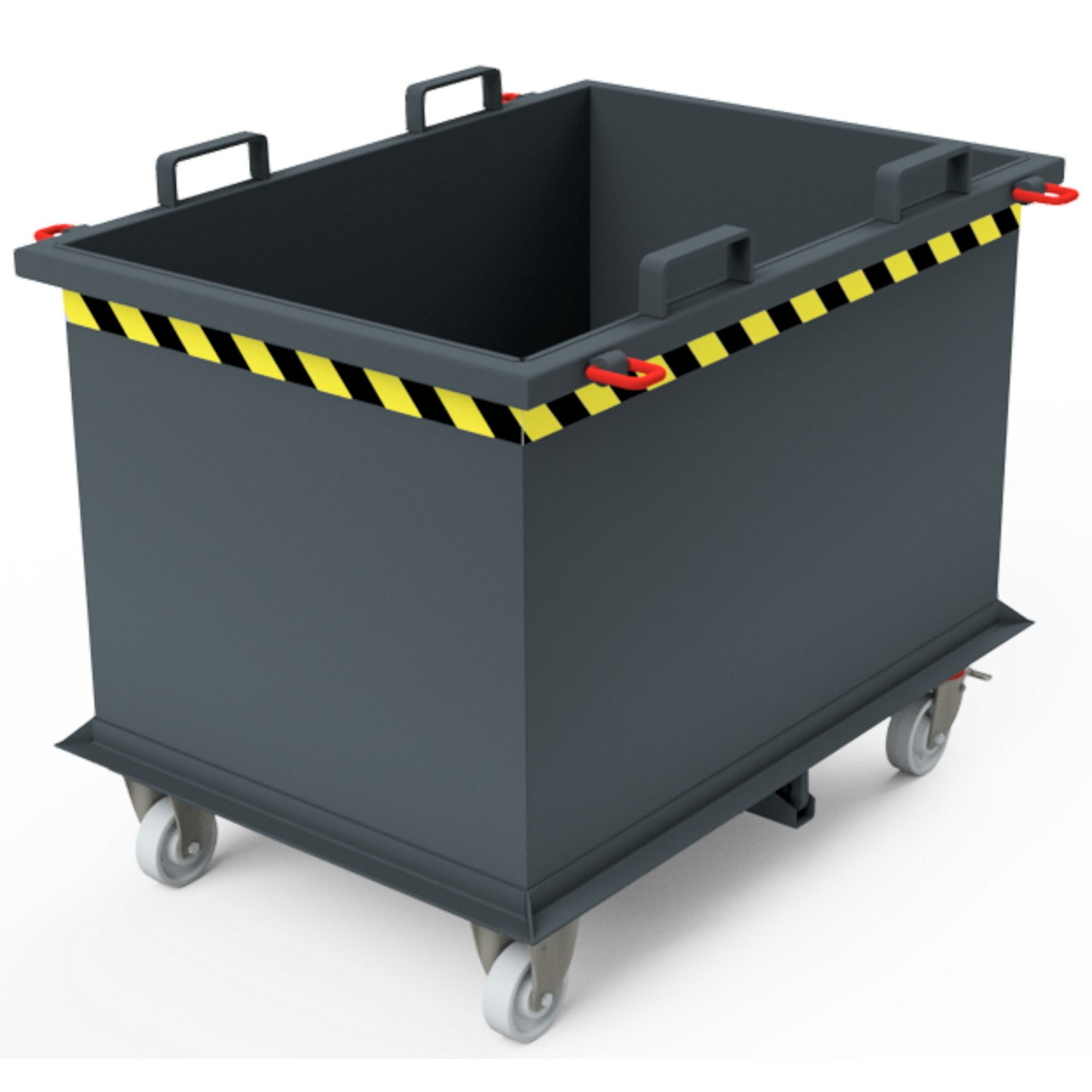 Der Klappbodenbehälter von BARTELS mit geringstmöglichen Außenabmessungen bei größtmöglichem Volumen. Durch die automatische Auslösung ist zudem kein Seilzug nötig. Nur durch Aufsetzen der Containerkante entriegelt sich die Bodenklappe.