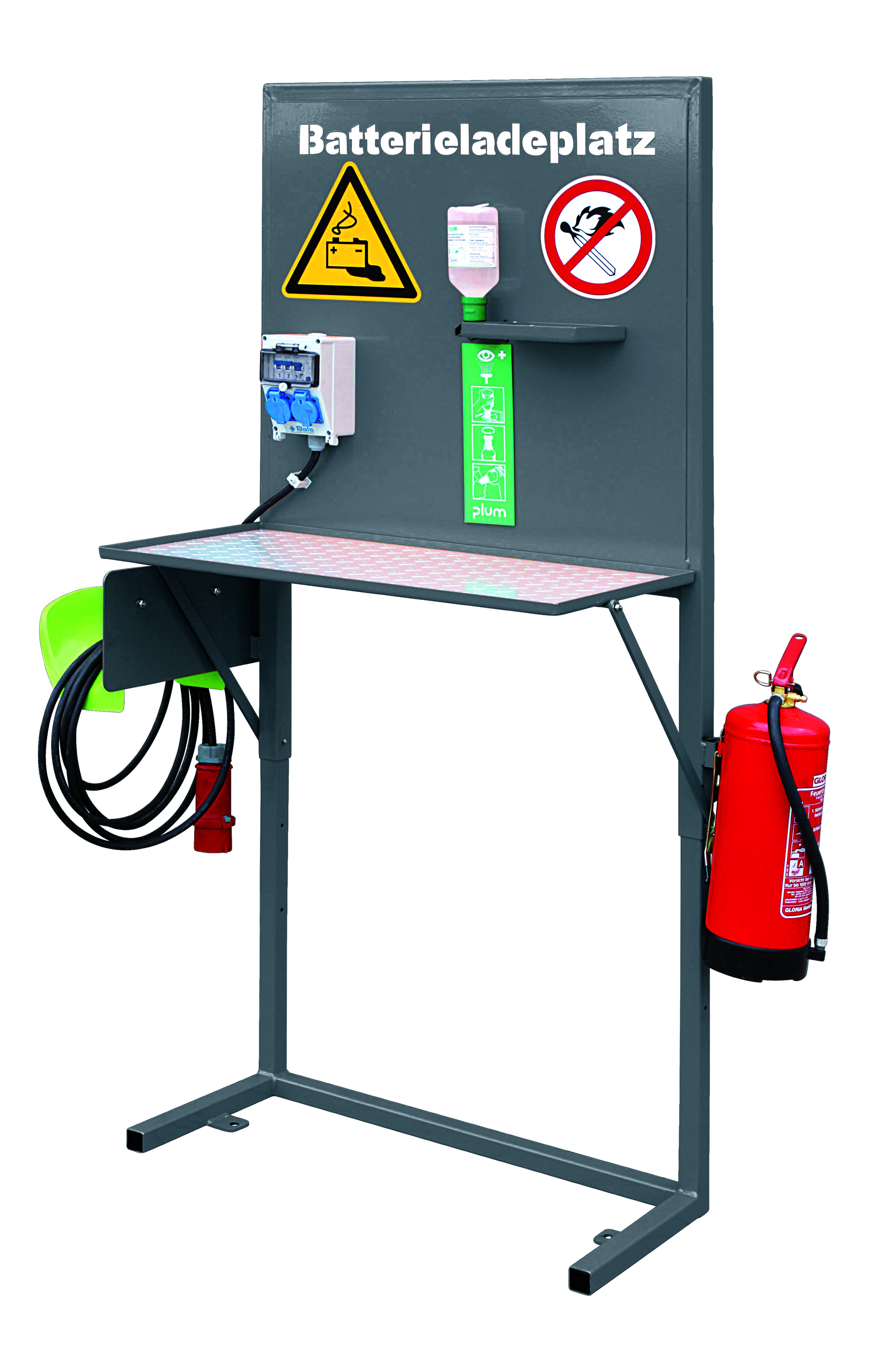 - Der Batterie-Ladeplatz ist gemäß GroLa BG und VdS-Infoblatt 2259 konzipiert und ermöglicht einfaches und sicheres Laden von Batterien in verschiedenen Anwendungsbereichen