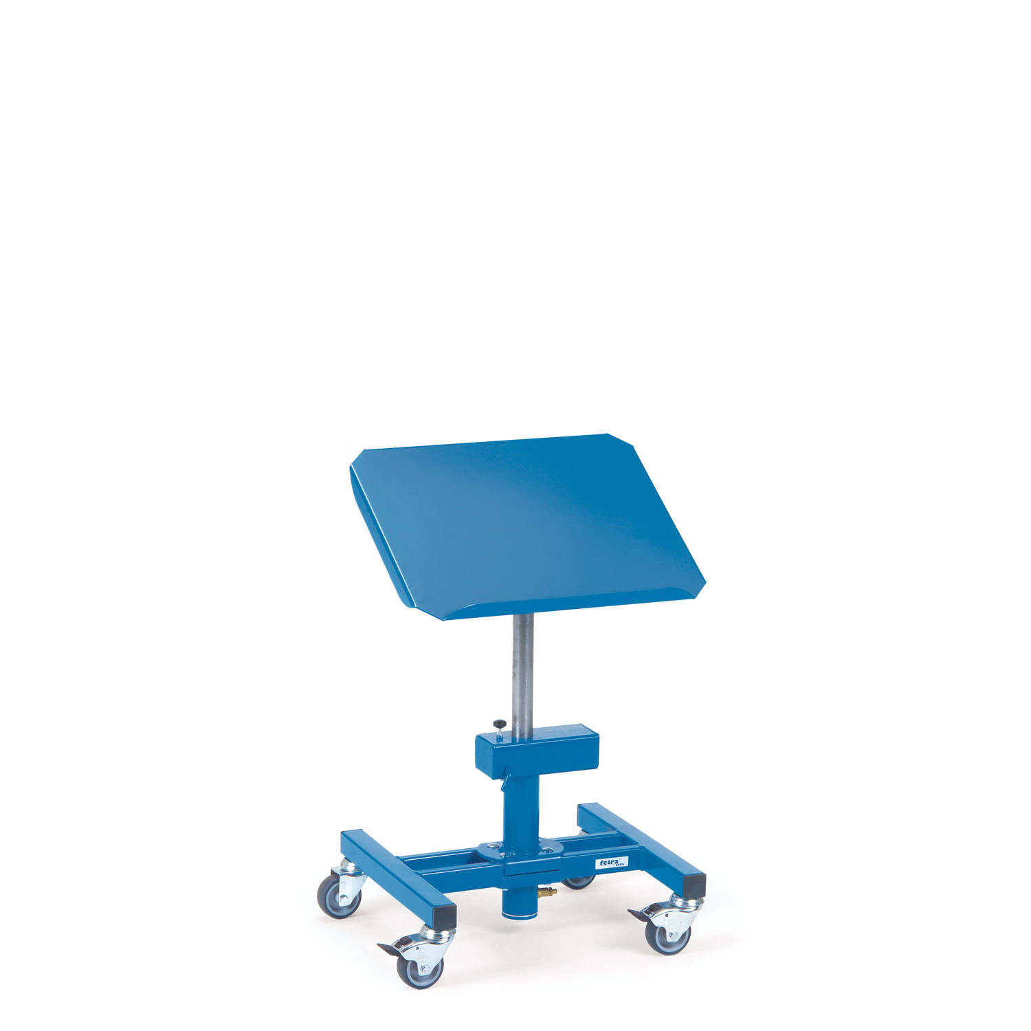 Mit seiner Pulverbeschichtung in Blau RAL 5007 präsentiert sich der Ständer nicht nur funktional, sondern auch ästhetisch ansprechend. Die 4 Lenkrollen mit Gleitlagerung ermöglichen eine einfache und reibungslose Bewegung, wobei 2 davon mit Feststellern gemäß EN 1757-3 ausgestattet sind, um die Stabilität zu gewährleisten.