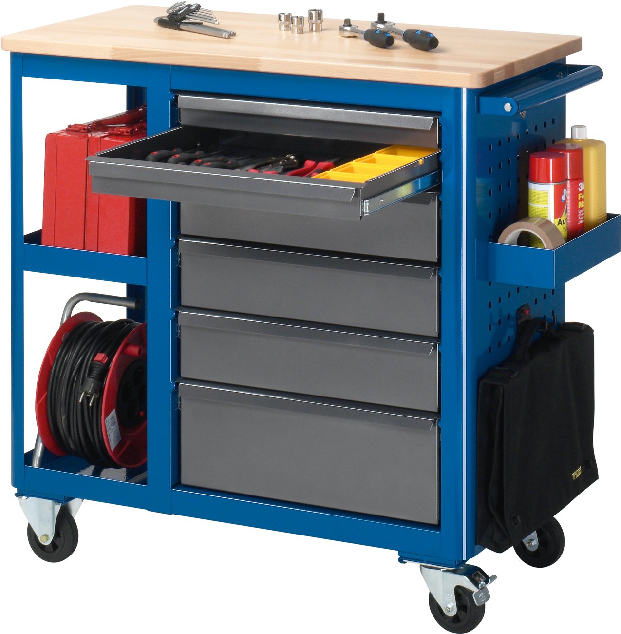 Mobile Werkbank - 4 Schubladen, Einschiebetür