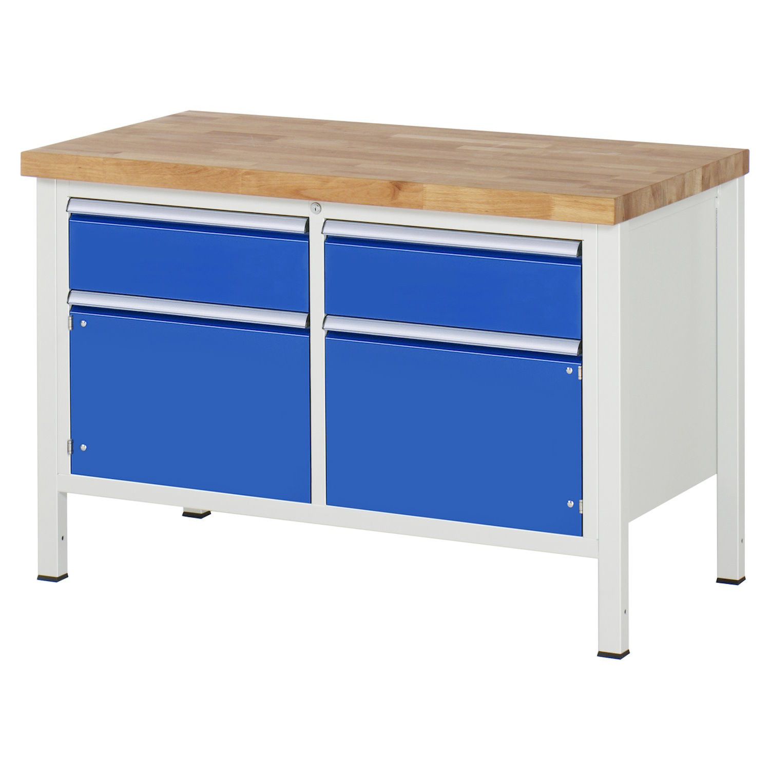 Werkbank mit Buche-Massiv-Platte - 2 Flügeltüren und 2 Schubladen