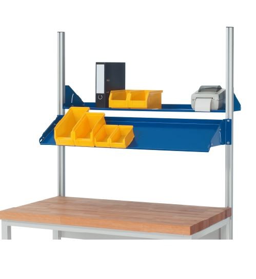 • Die Metallablage bietet zusätzlichen Stauraum und einen schnellen Zugriff z.B. auf Sichtlagerkästen direkt am Arbeitsplatz