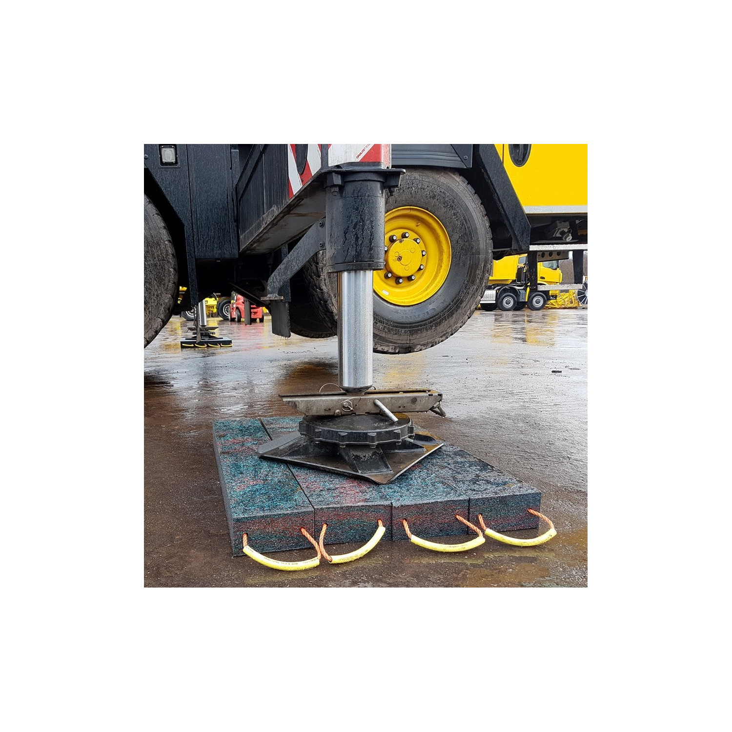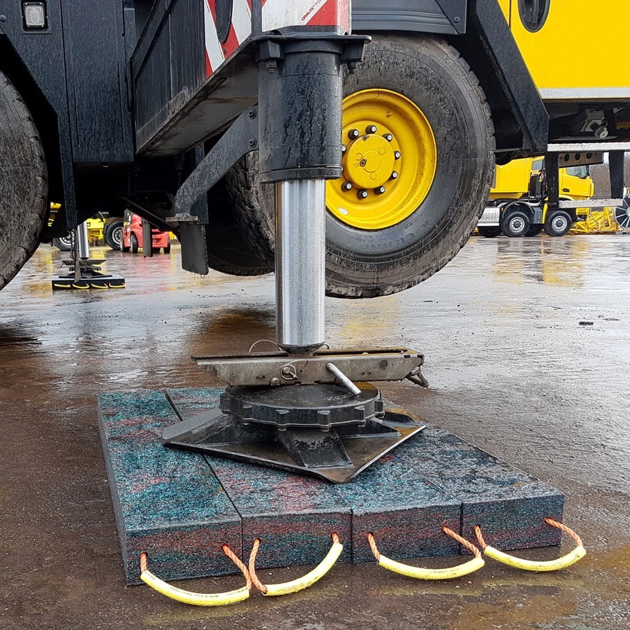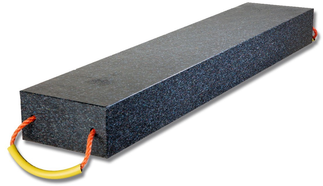 Durch das angewandte Pressverfahren bildet sich ein hochverdichteter Granulatverbund, der extrem biegesteif ist. Das führt zu einer besseren Lastverteilung, die sogar hohen Punktbelastungen standhält. Die Kranbalken sind mit Handgriffen bzw. Kordeln ausgestattet, so dass sie einfach zu tragen und platzieren sind.