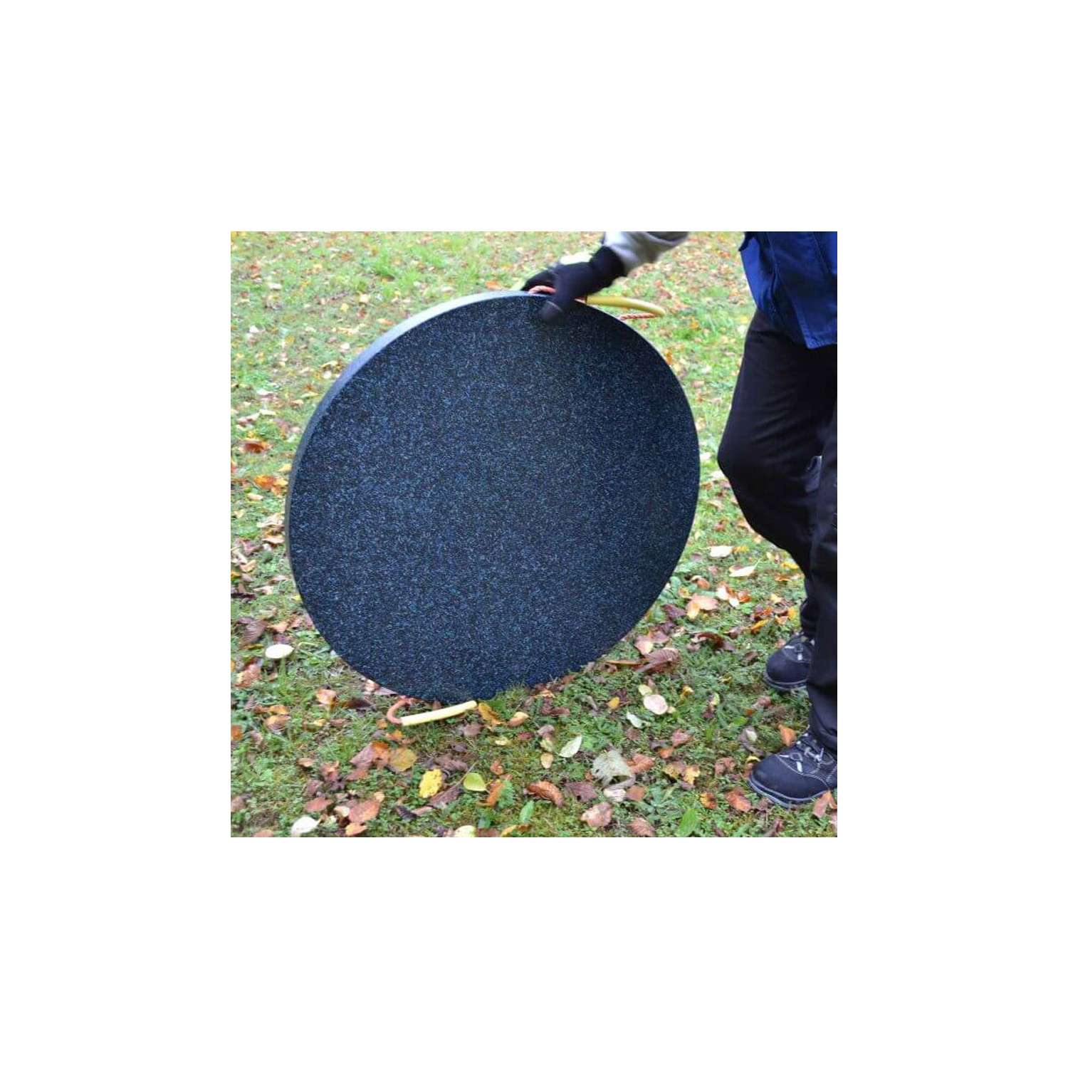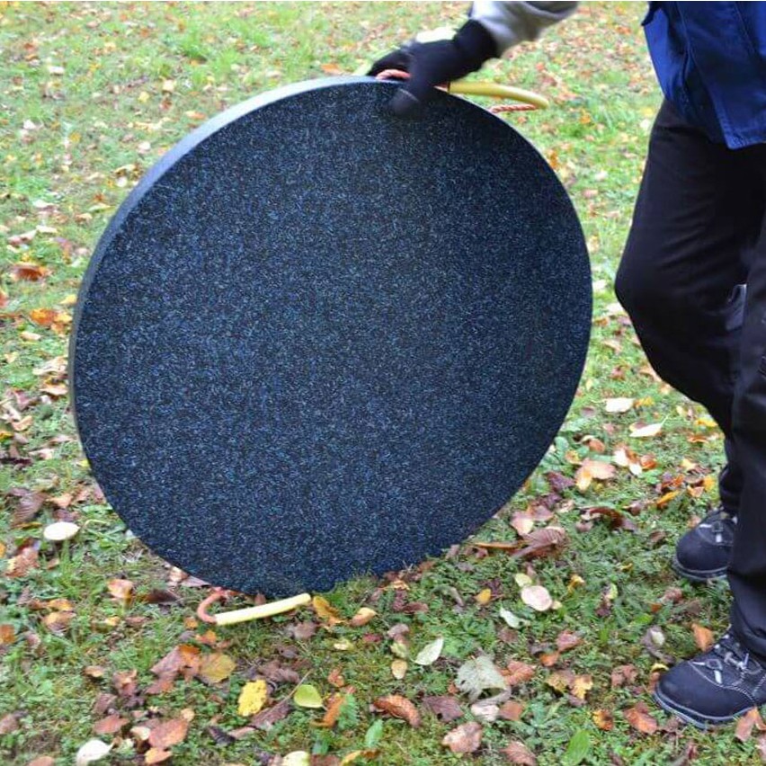 Das Material kann sich im Gegensatz zu Holz nicht mit Wasser oder Chemikalien voll-saugen. Dadurch wird die Standsicherheit langfristig gewährleistet. An ihren Einsatzort können die runden Schutzplatten bequem gerollt werden, so lassen sie sich auch von einer einzigen Person verlegen. Alternativ können sie getragen werden, dazu sind sie wie unsere Kranbalken mit Halteschlaufen und Kunststoffgriffen versehen.