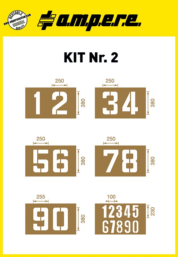 - 1 2 3 4 5 / 6 7 8 9 0 (Zahlenhöhe 230 mm, Zahlenbreite 100 mm)