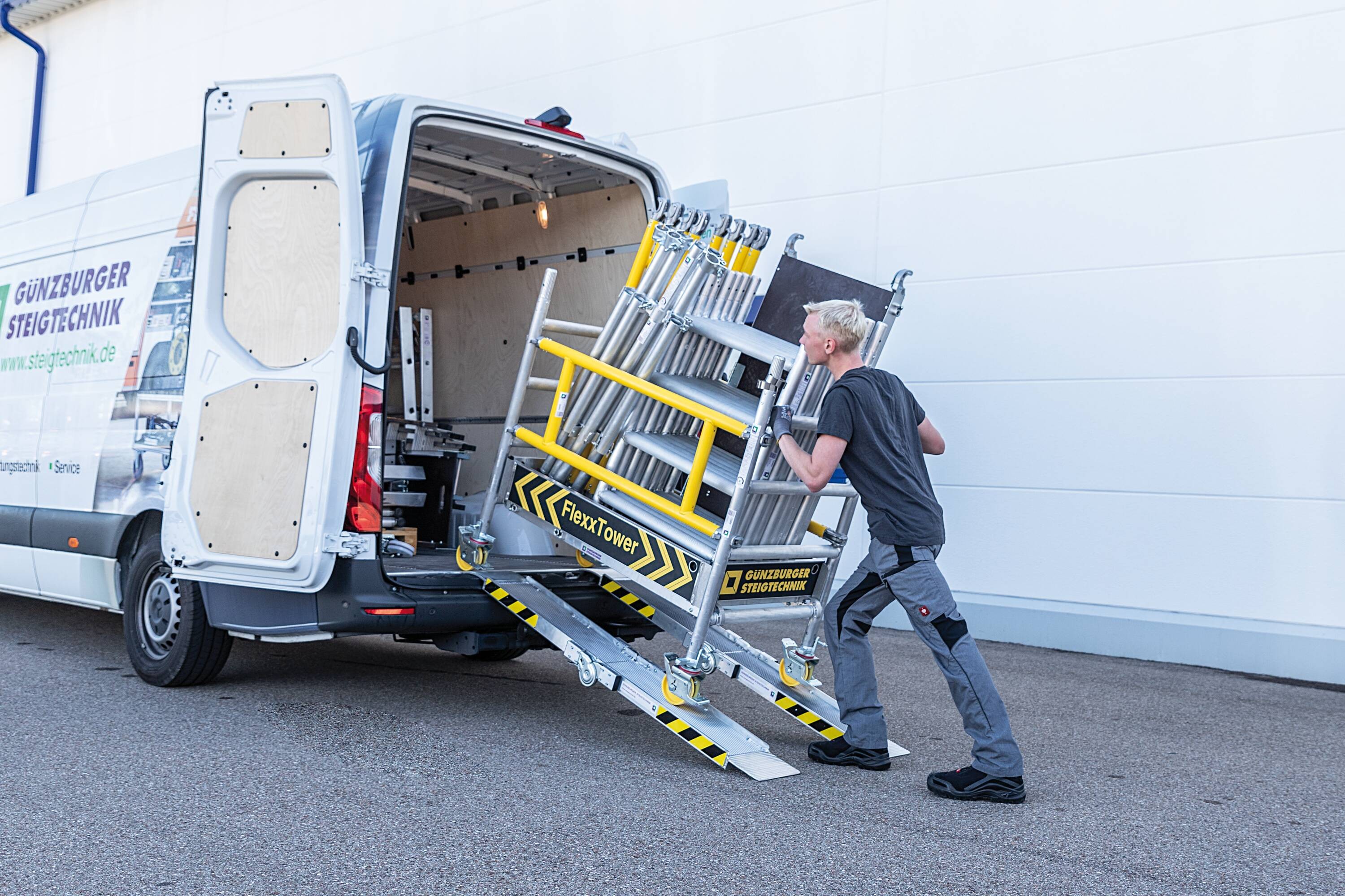 - Das Gerüst lässt sich schnell und einfach mittels 3-T-Methode von nur einer Person auf- und abbauen