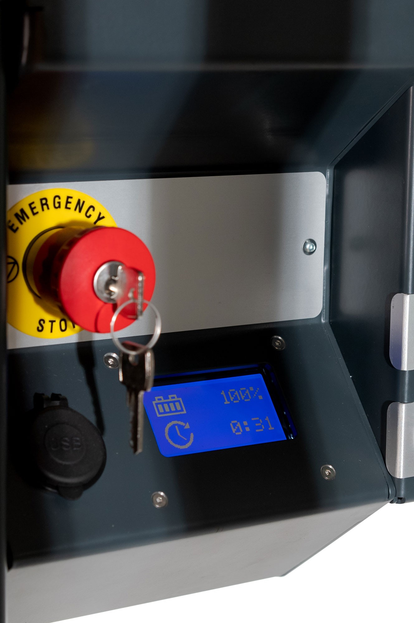 - Für die Sicherheit Ihrer Mitarbeiter besitzt der Personenlift eine Korbzugangstür mit zwei Flügeln inkl. Schließkontrolle und eine Sicherheitsbremse