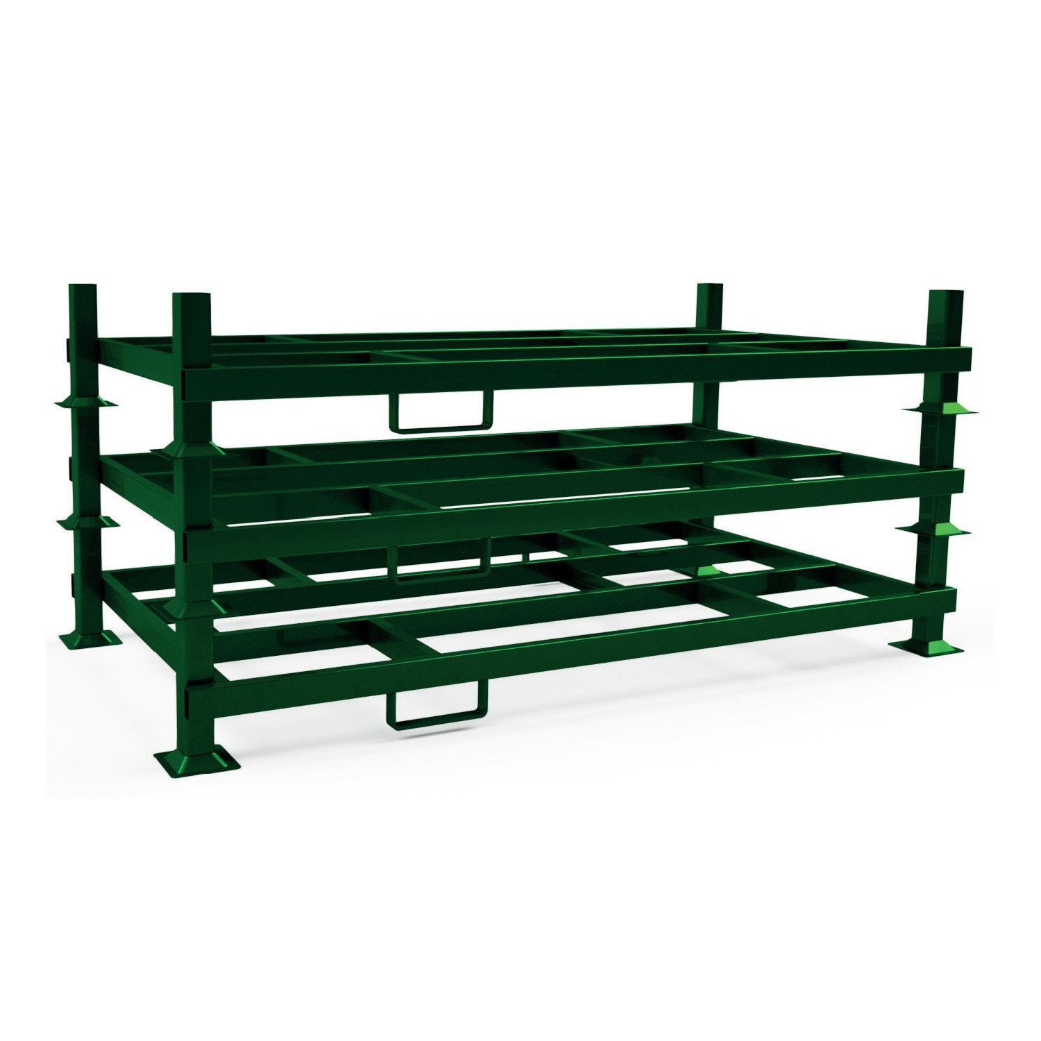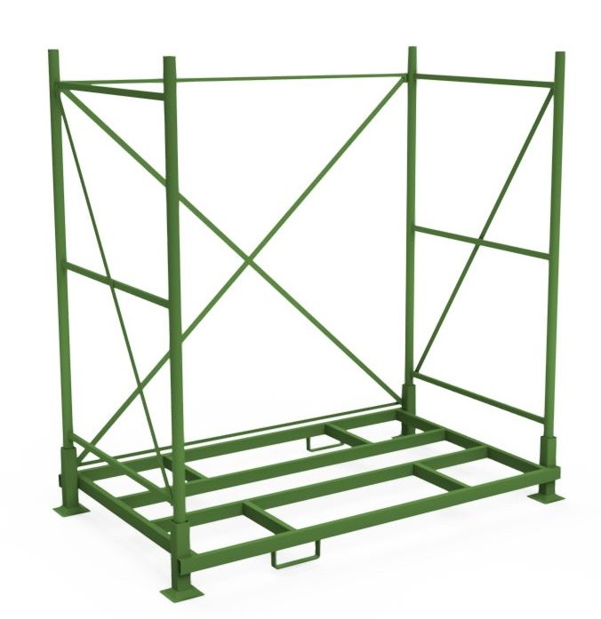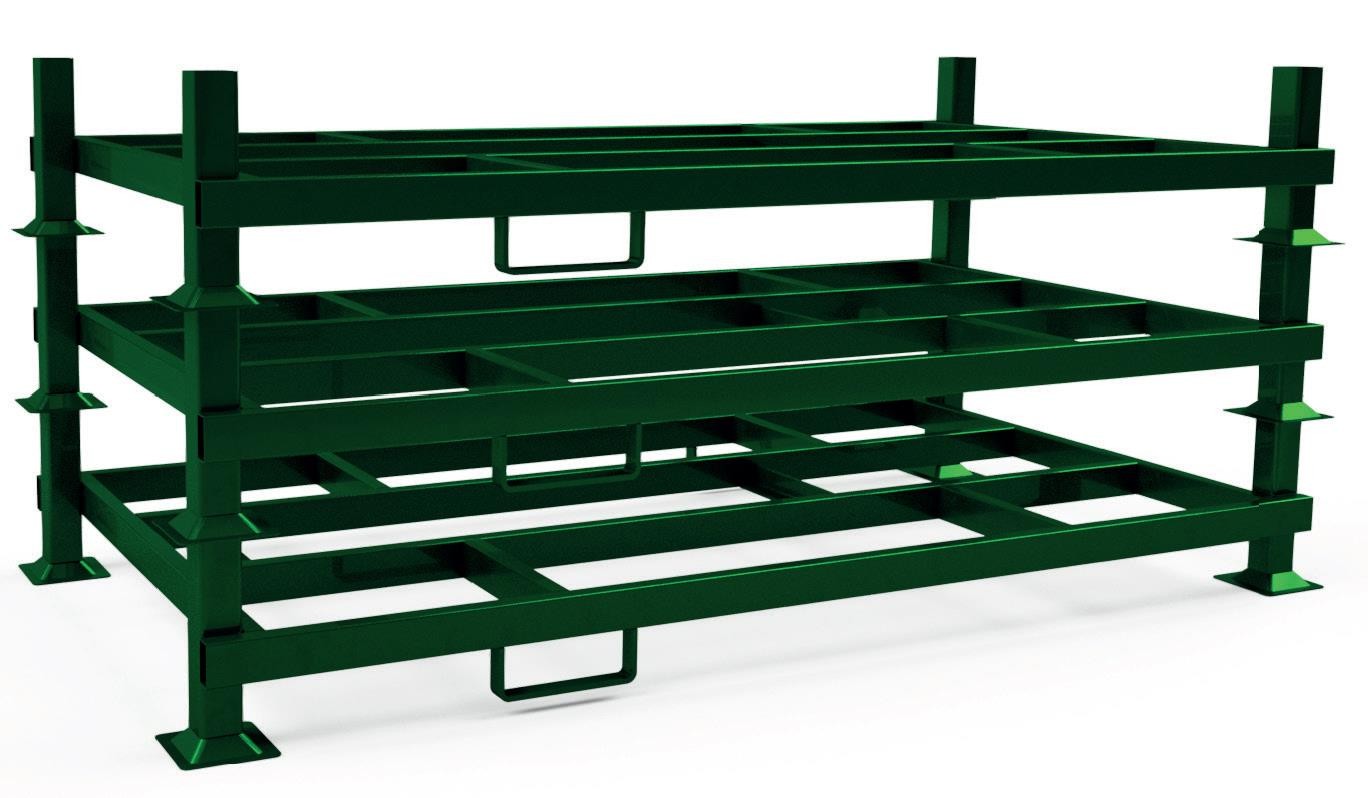 - Die Rungenpalette lässt sich für eine platzsparende Lagerung bis zu 6-fach stapeln.