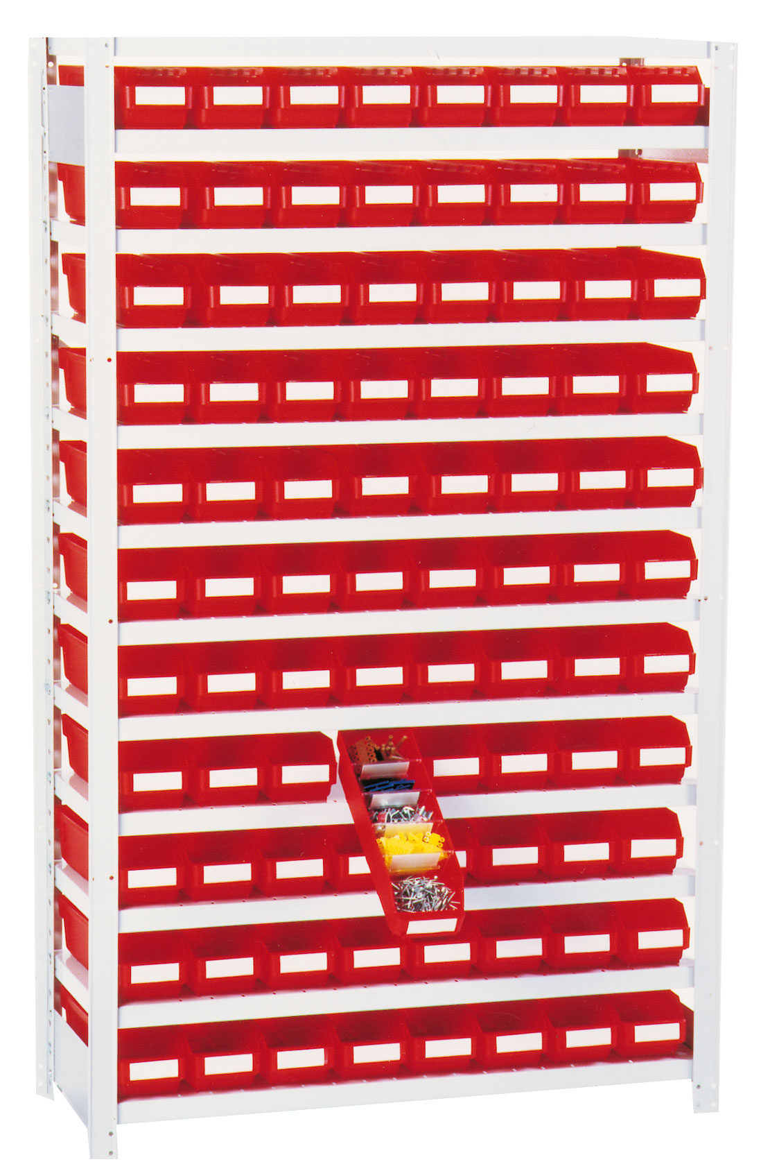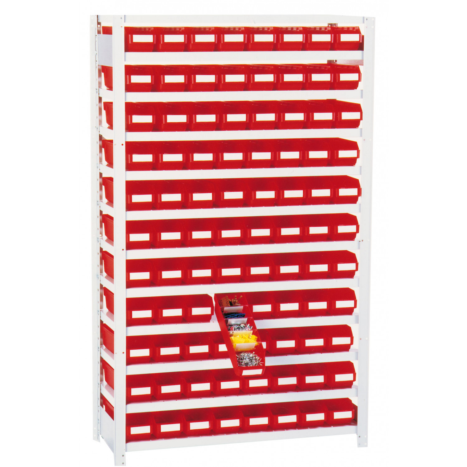 Jedes Regal ist mit einer breiten Regalbodenfläche von 1000 mm ausgestattet, die eine großzügige Lagerfläche bietet. Die Lagerkästen, erhältlich in den Farben Rot, Gelb, Grün oder Blau, ermöglichen eine klare und übersichtliche Organisation Ihrer Lagerbestände.