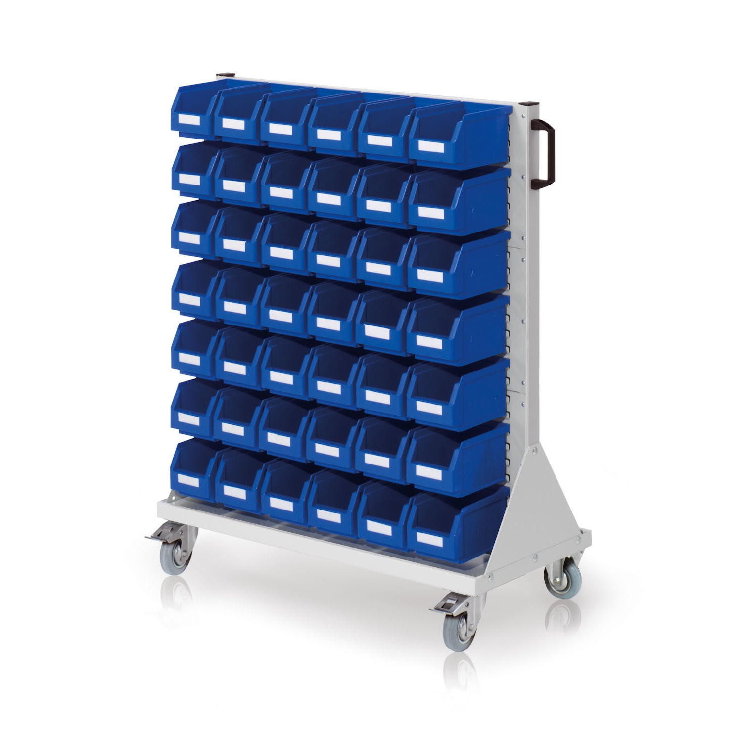 - Das doppelseitige RasterMobil mit Lagersichtkästen bietet eine ideale Lösung für die Lagerung von Werkzeugen und Kleinteilen