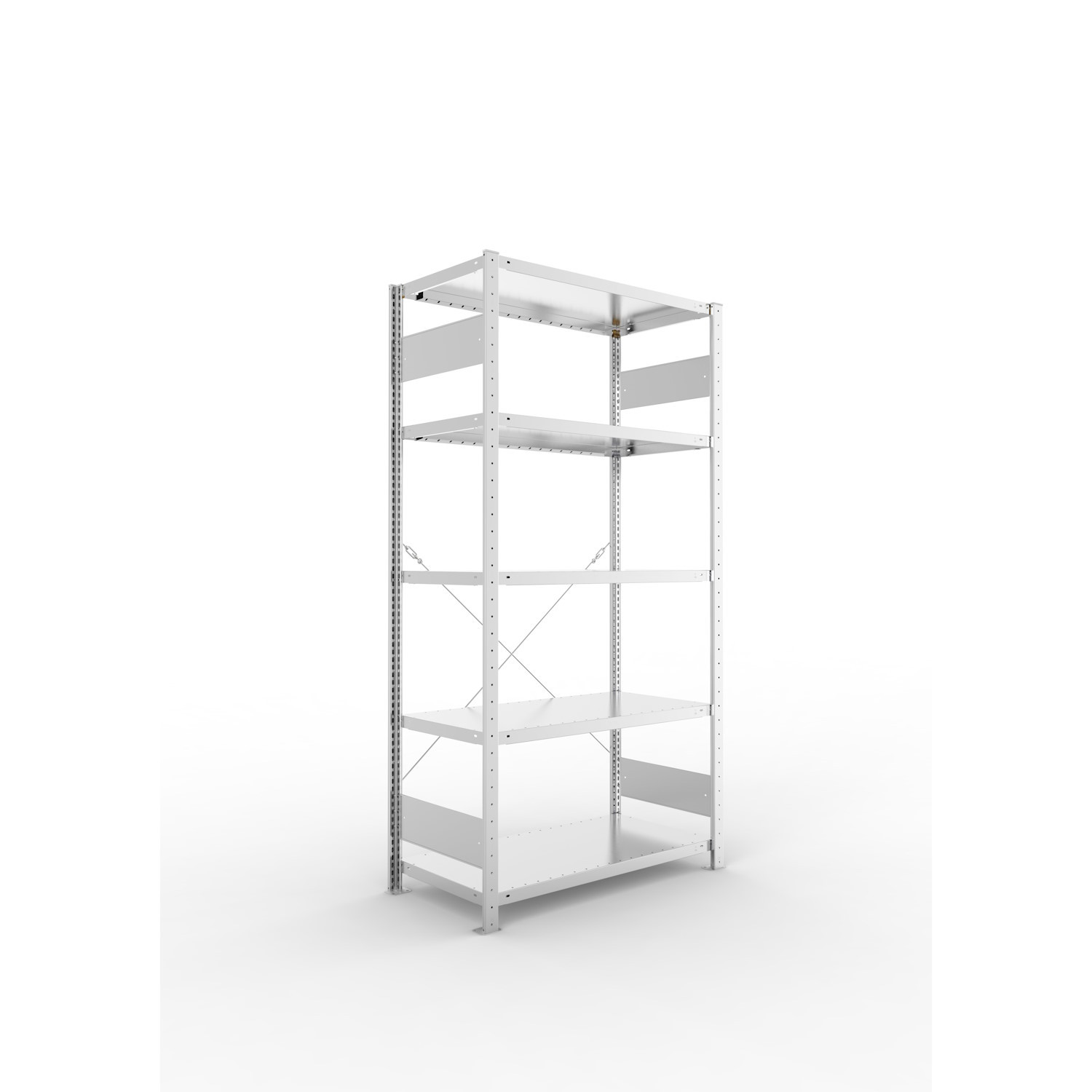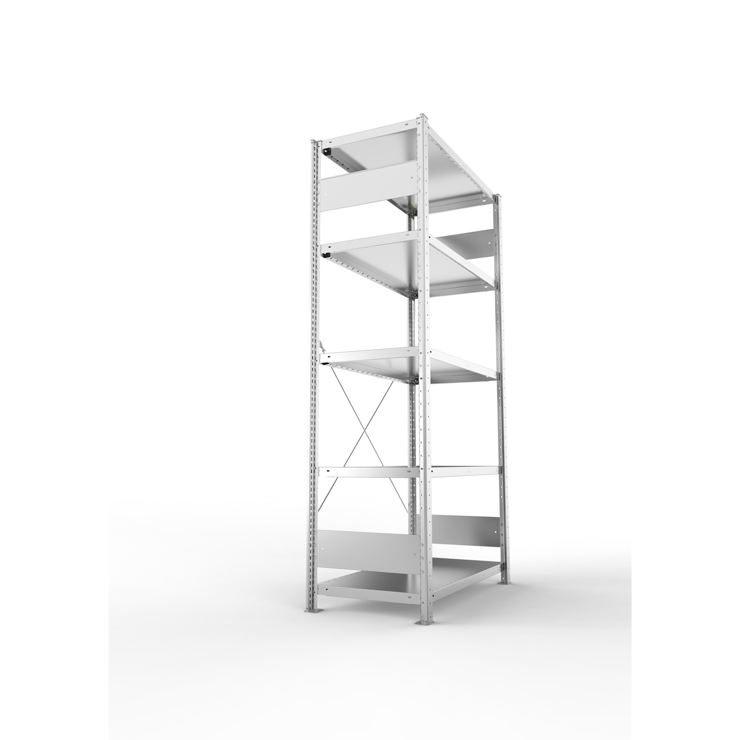 Regale mit dem Höhen-/Tiefenverhältnis ≥ 5 : 1 gegen Kippen sichern (Wand- oder Fußverankerung). Fach-/Feldlasten gelten bei gleichmäßig verteilter Last.