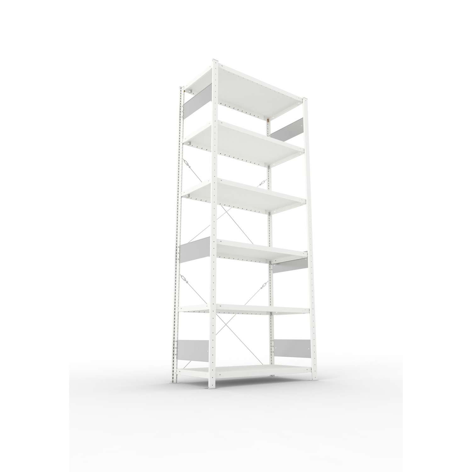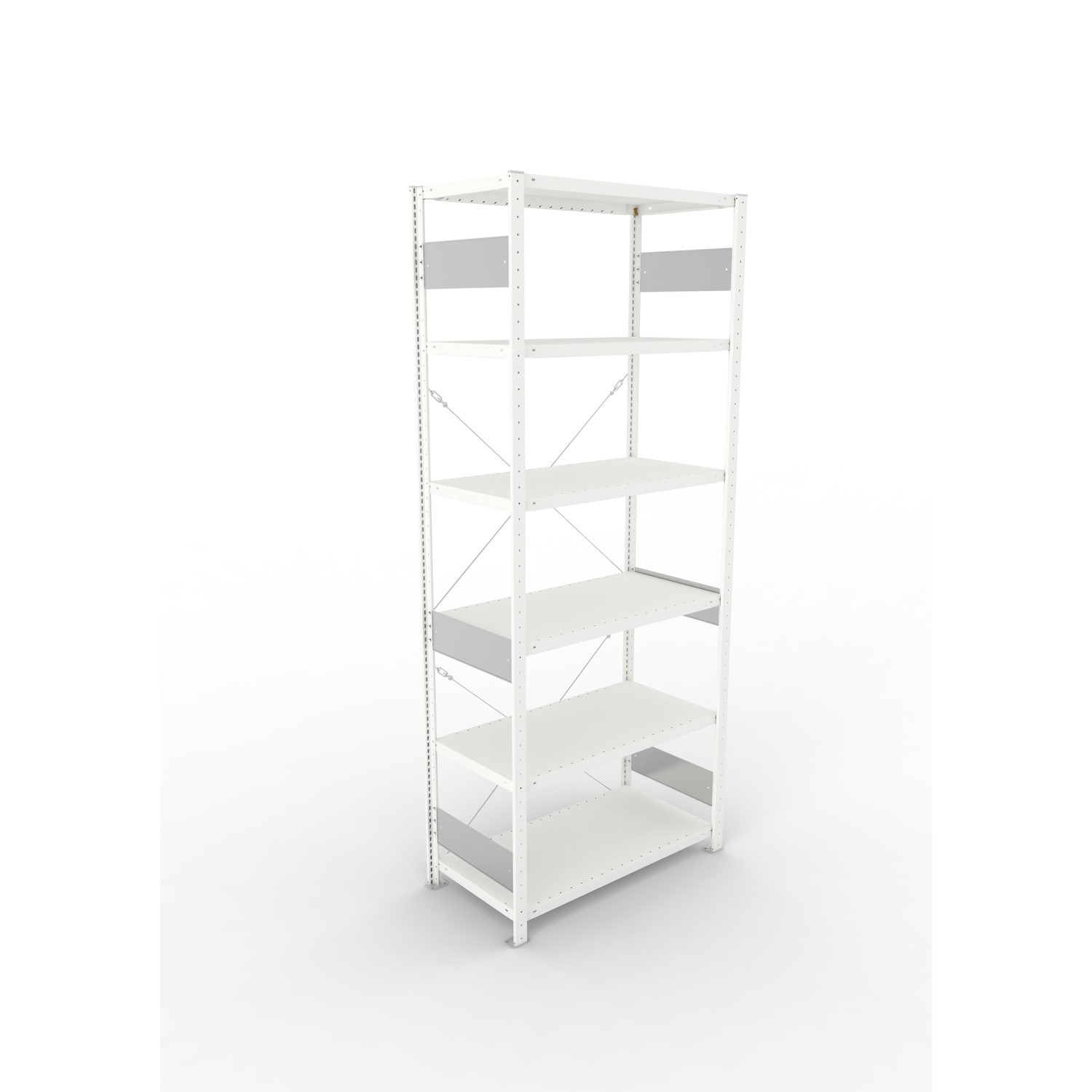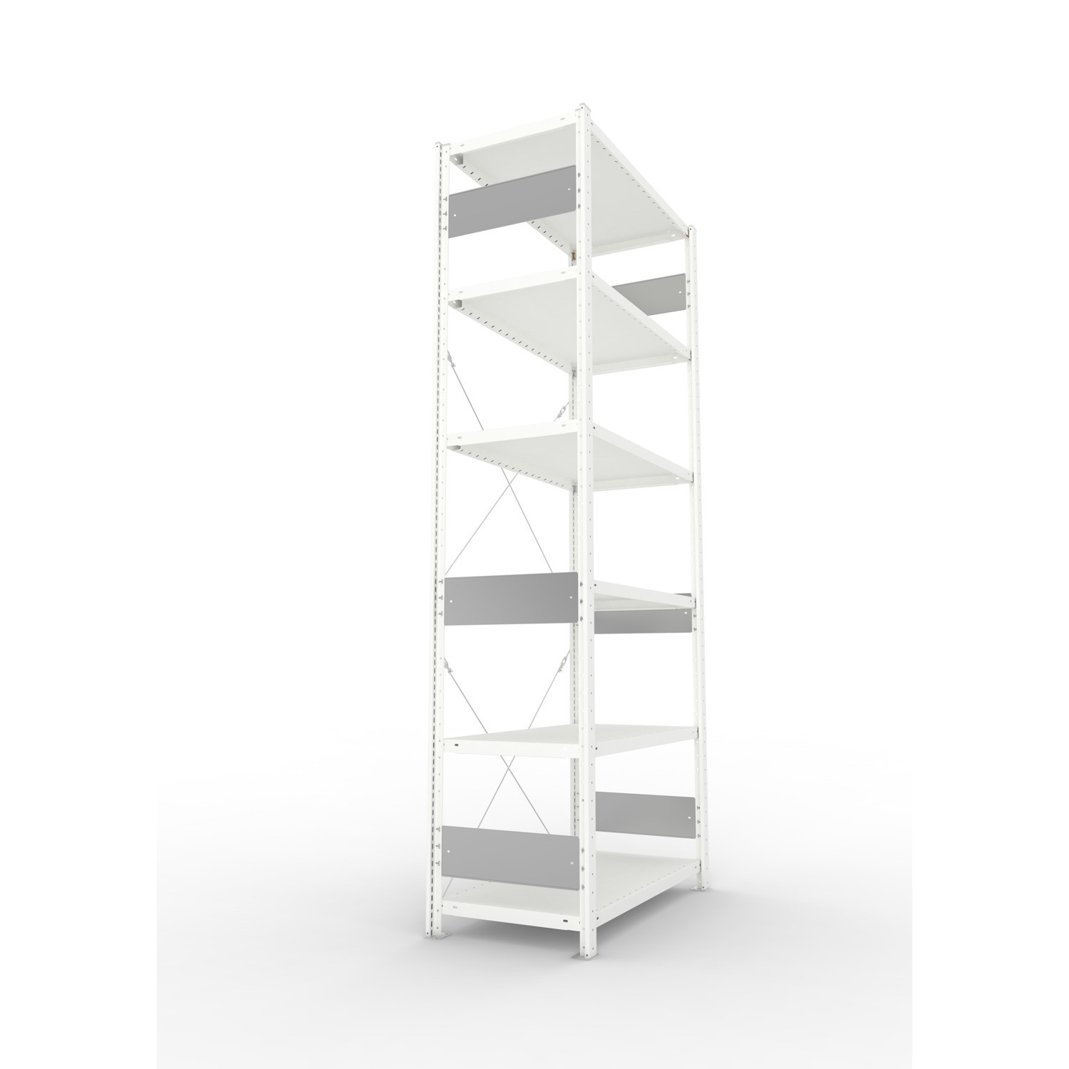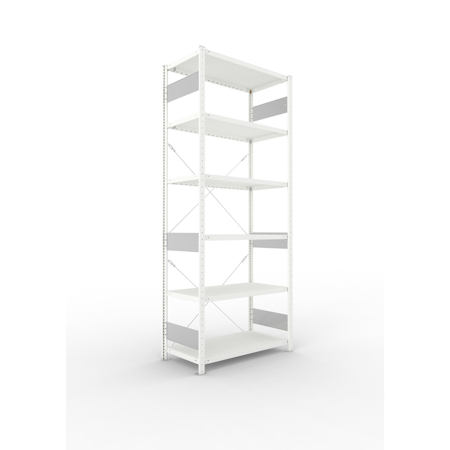 Regale mit dem Höhen-/Tiefenverhältnis ≥ 4 : 1 gegen Kippen sichern (Wand- oder Fußverankerung). Fach-/Feldlasten gelten bei gleichmäßig verteilter Last.
