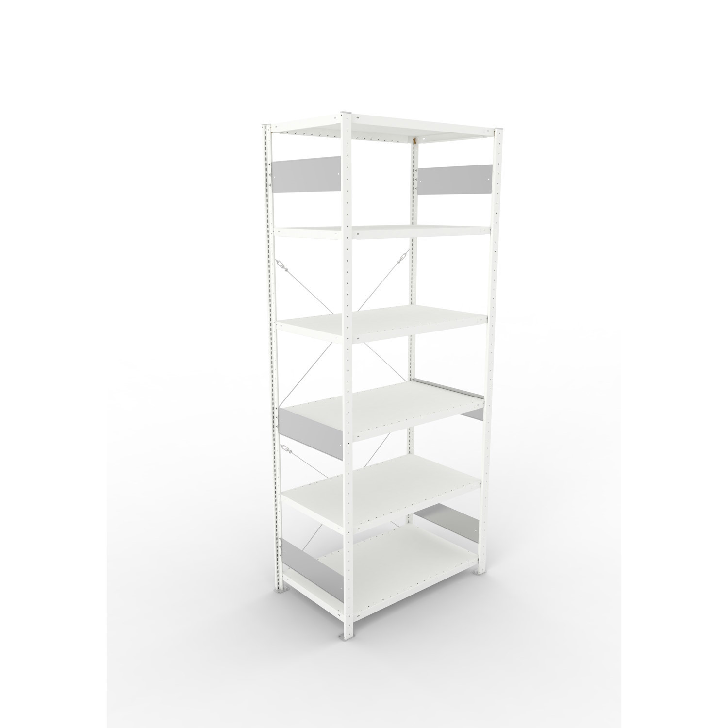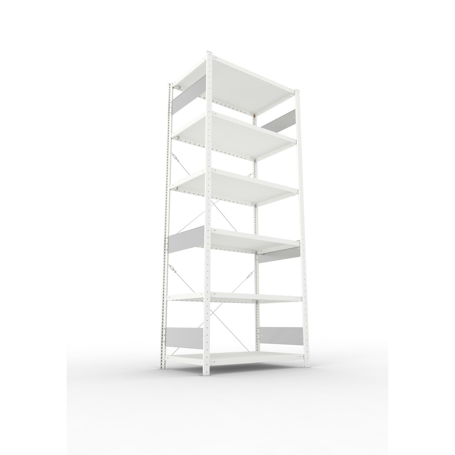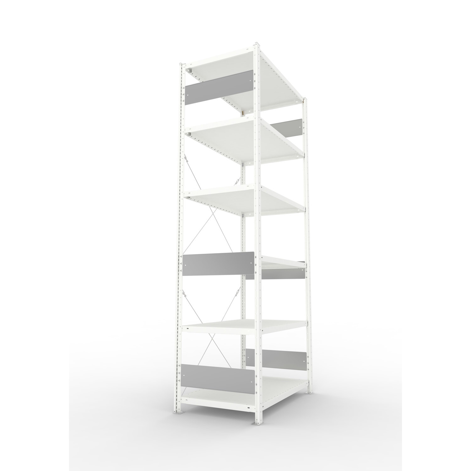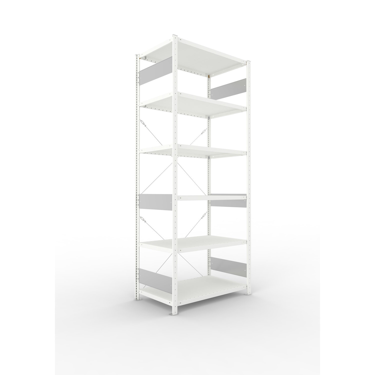 Regale mit dem Höhen-/Tiefenverhältnis ≥ 4 : 1 gegen Kippen sichern (Wand- oder Fußverankerung). Fach-/Feldlasten gelten bei gleichmäßig verteilter Last.