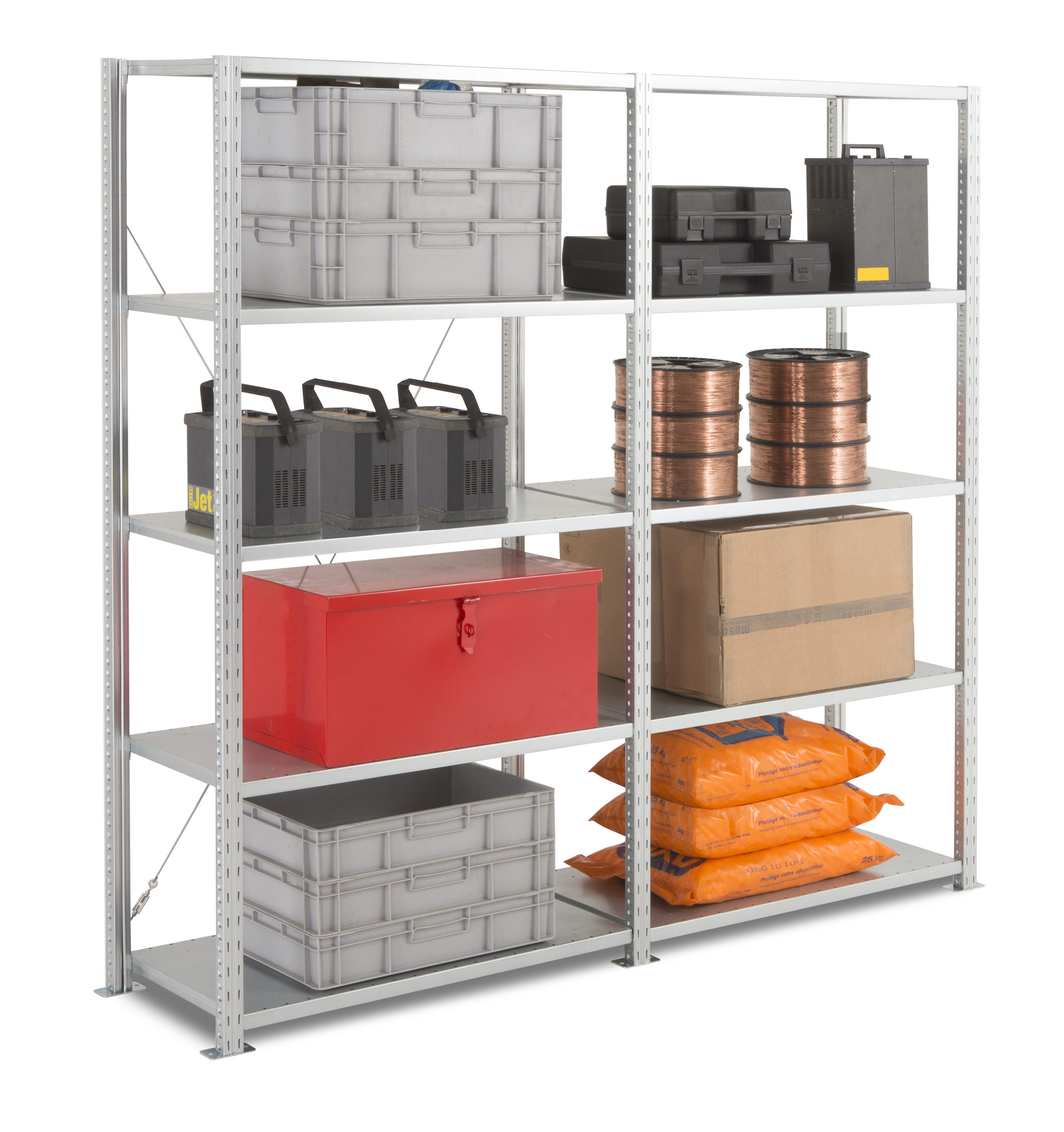 Das angebotene Regal ist ein Standardbausatz, folgende Individualisierungen sind auf Anfrage erhältlich: Türen, Schubladen, (gelochte) Rückwände, schräge Fachböden, Fachbodenverbinder, Fachteiler sowie weitere Höhen, Lackierung mit hochresistenter Epoxidfarbe und mehr. Bitte sprechen Sie uns an.