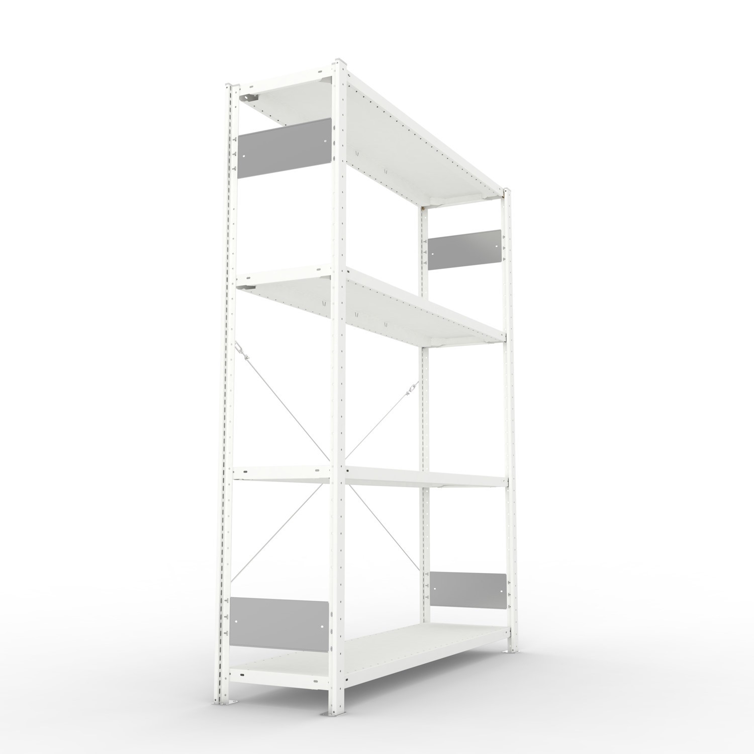 - Die Diagonalverstrebungen mit Spannschlössern garantieren eine perfekte und einfache Ausrichtung des Regals und eine hohe Stabilität.