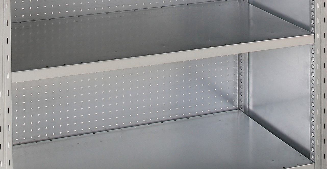 Das Stahlblechregal ist das flexibelste Regal im Sortiment von Manorga. Die Auswahl an Zusatzaustattungen lässt keine Anforderungen ungedeckt und ermöglicht dem Nutzer die optimale Lagerung und Sortierung seiner Waren. Rückwände sorgen für eine Abtrennung der Rückseite des Regals. Sie verhindern auch das Herunterfallen von Produkten. Die Rückwand stabilisiert das Regal, daher wird in dieser Konfiguration der Kreuzverband weggelassen. Besonders ist bei der gelochten Rückwand die Möglichkeit der Anbringung von Werkzeugen oder anderen Arbeitsmaterialien. So wird der Lagerplatz pro Fach bestmöglcih ausgenutzt.