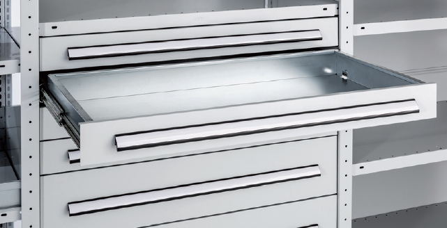 Die Schubladen für das Stecksystem Clip ermöglichen die Lagerung von Kleinstteilen. Mit einer Belastung von 70 kg bei gleichmäßig verteilter Last eignen sie sich besonders zur Lagerung beispielsweise von Schrauben, Muttern und vieles mehr.