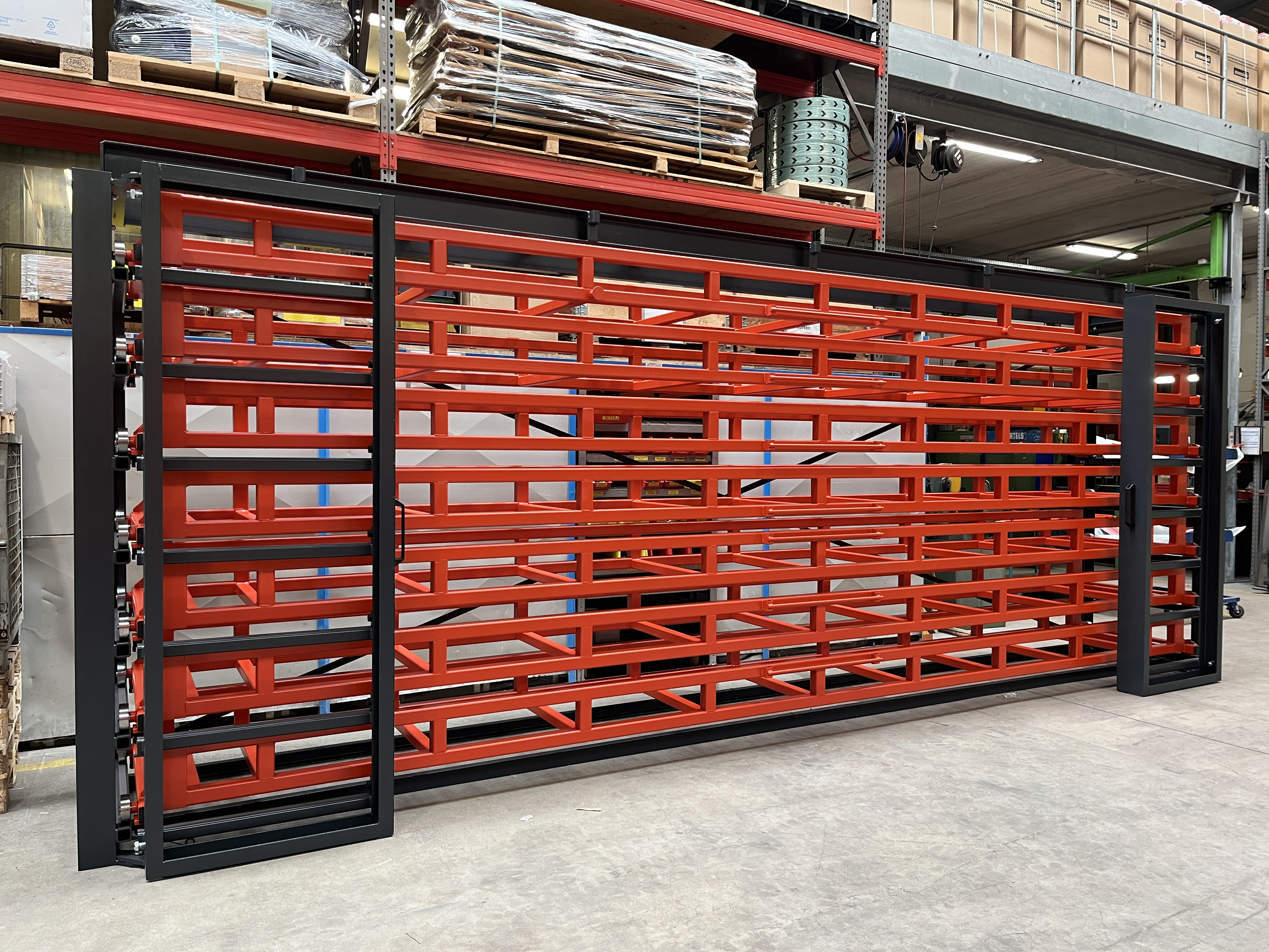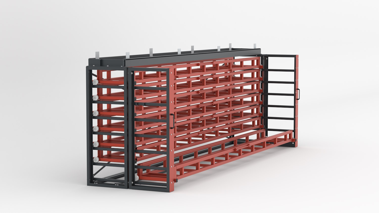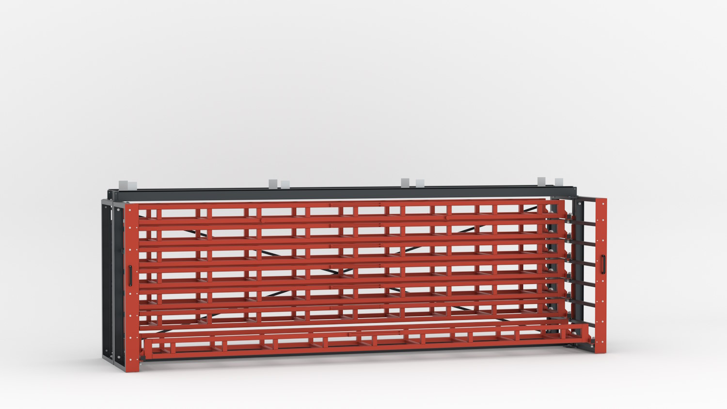 Das Kassettenschubfachregal von Bartels ist ein Lager für lange Stahlprofile. Die platzsparende Lagerung von Stangenmaterial ist ein Muss bei beengten Produktionsbedingungen. Wir bieten Ihnen eine Lösung für Langgutlagerung an, bei der das Kassetten-Auszugsregal mit dem Kran über die Vorderseite bestückt wird. Eine Entnahme ist aber auch über die schmalen Stirnseiten möglich. Das Langgutregal kann auf Grund seiner Bauweise direkt an der Wand platziert werden. Durch den schwenkbaren Vorbau können die einzelnen Kassetten 100 % nach vorne ausgezogen werden. Nach der Bedienung wird der Schwenkvorbau wieder eingeklappt und die engen Arbeitsgänge sind wieder frei. Für die leichte Entnahme des Stangenmaterials von den Stirnseiten aus, auch bei geschlossenem Vorbau des Kassettenschubfachregals wird einfach eine Abrollwalze eingesteckt, über die sich das Stabstahl leicht herausziehen lässt.