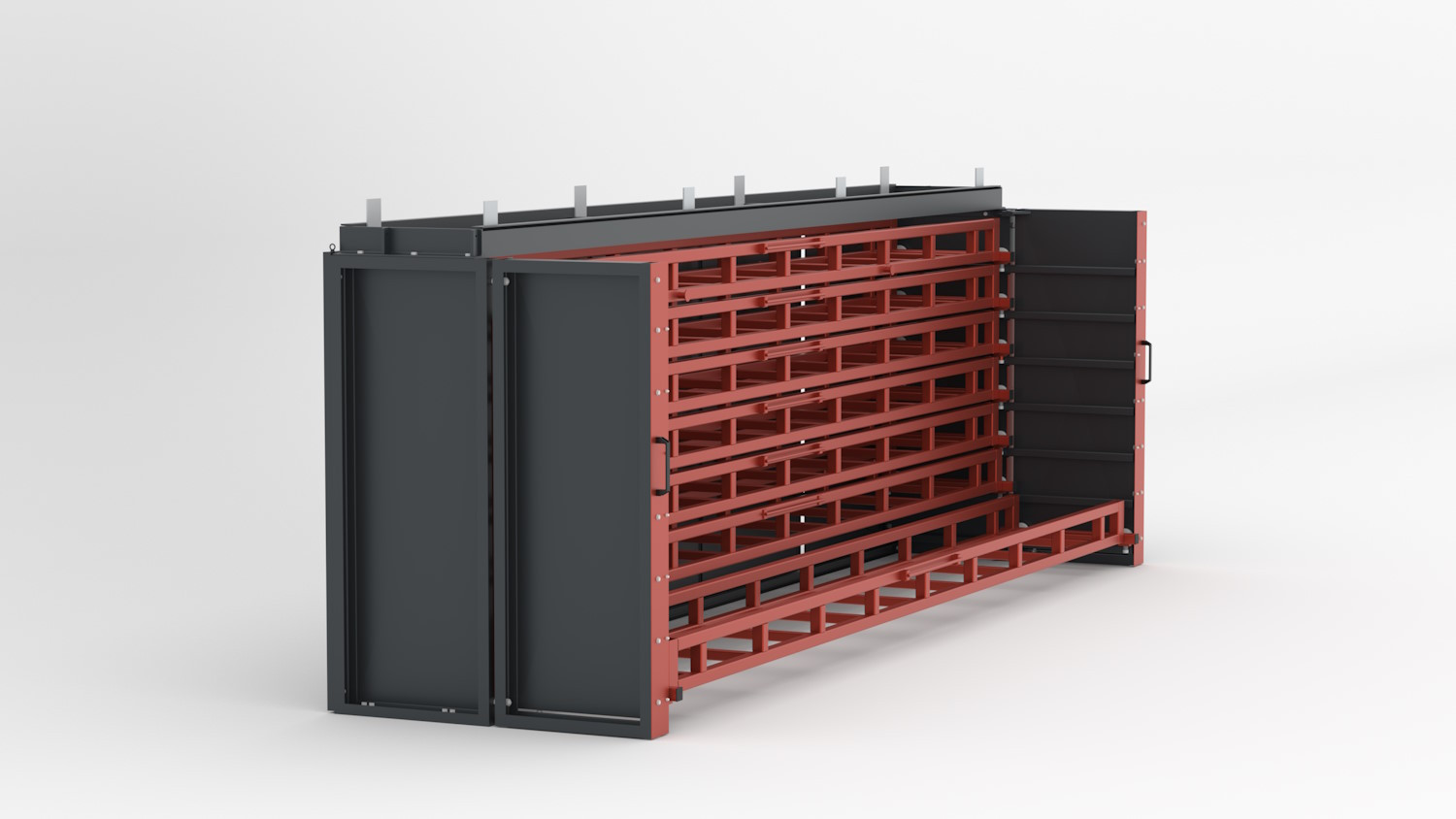 - Der 100 % Auszug ist ideal für die Kranbeschickung und ermöglicht eine einfache und schnelle Materialentnahme