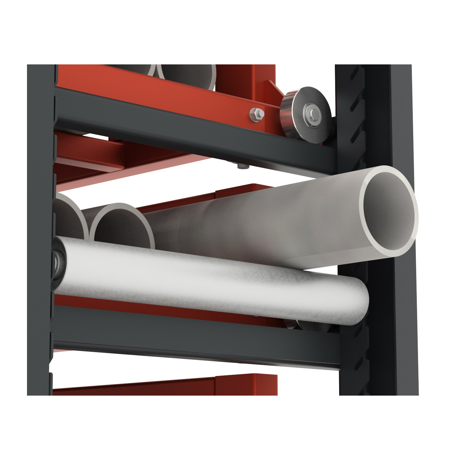 - Ermöglicht eine sortenreine Lagerung von Stangenmaterial (auch für Reststücke geeignet) und erhöht dadurch die Übersichtlichkeit