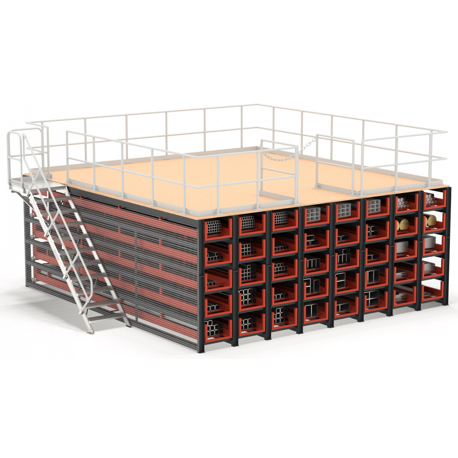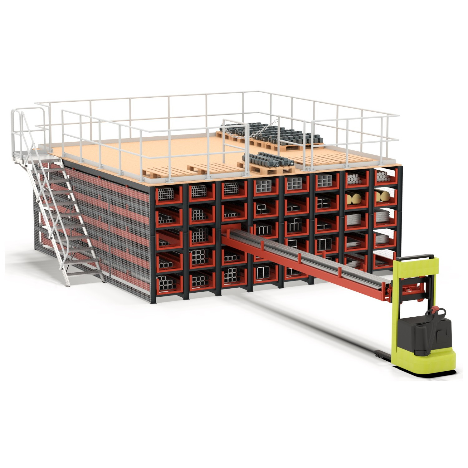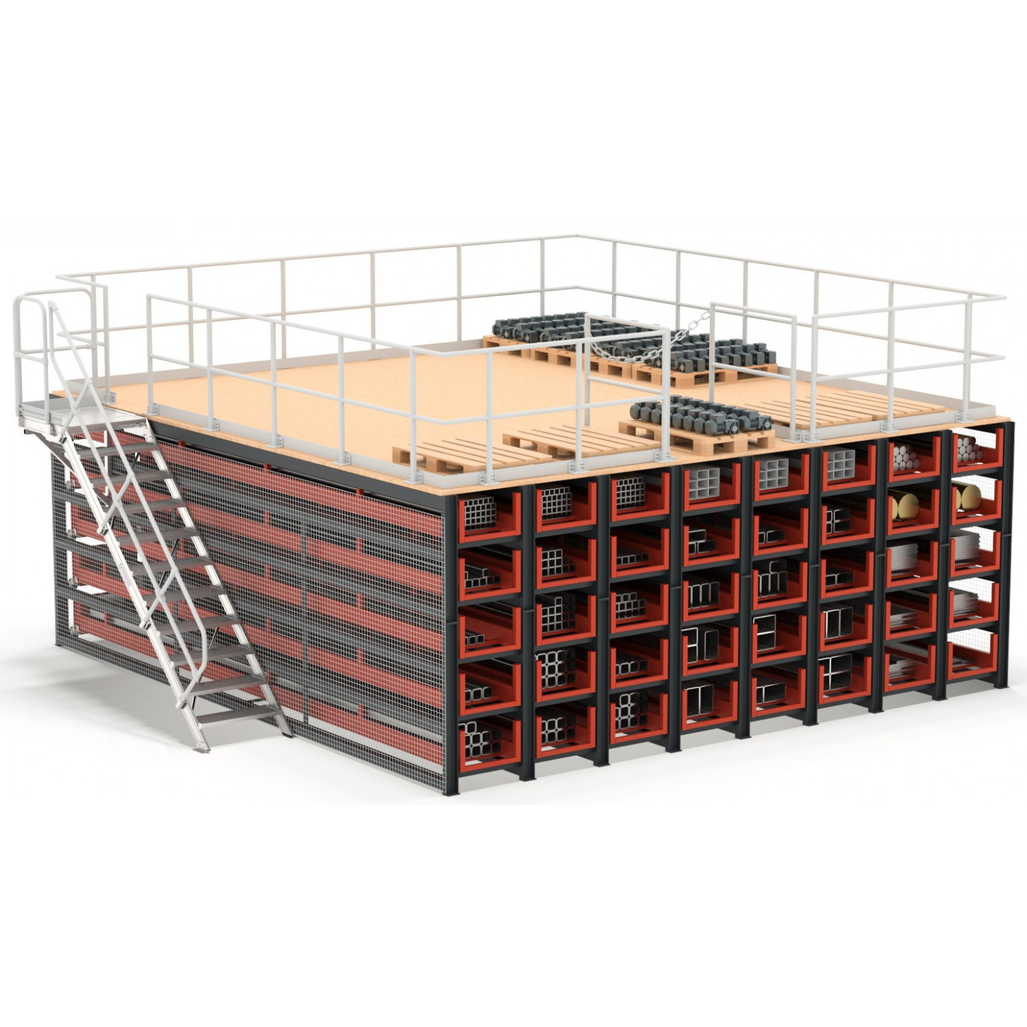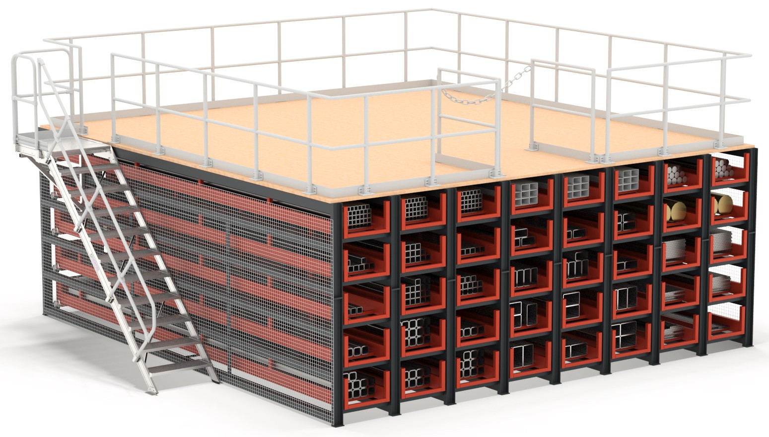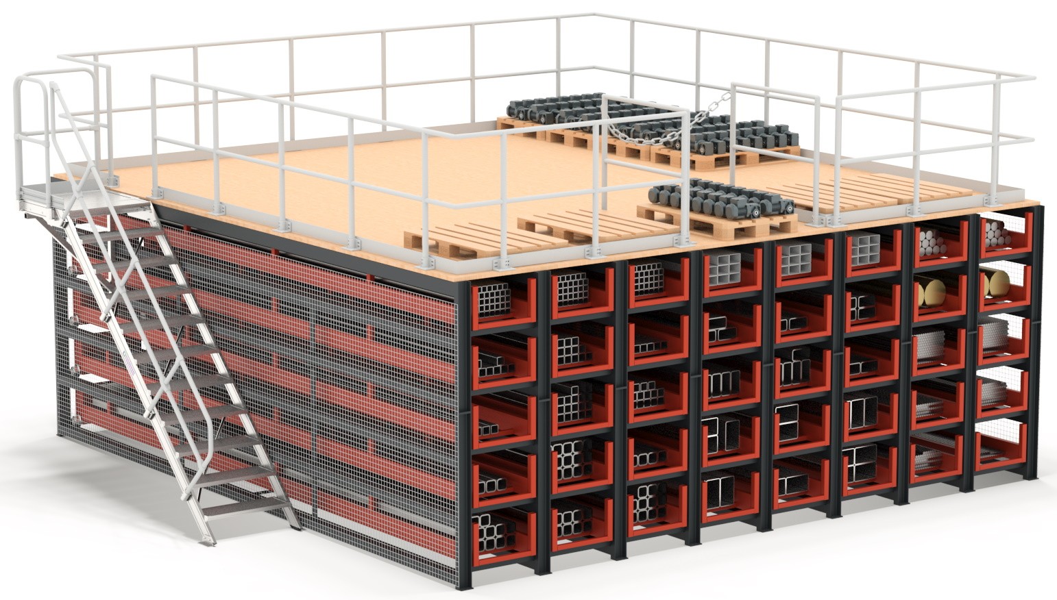 Ideal für Hallen oder niedrige Lagerräume - die kompakte Stahlschweißkonstruktion ist in modularer Wabenbauweise konstruiert und kann nahezu unbegrenzt erweitert werden.