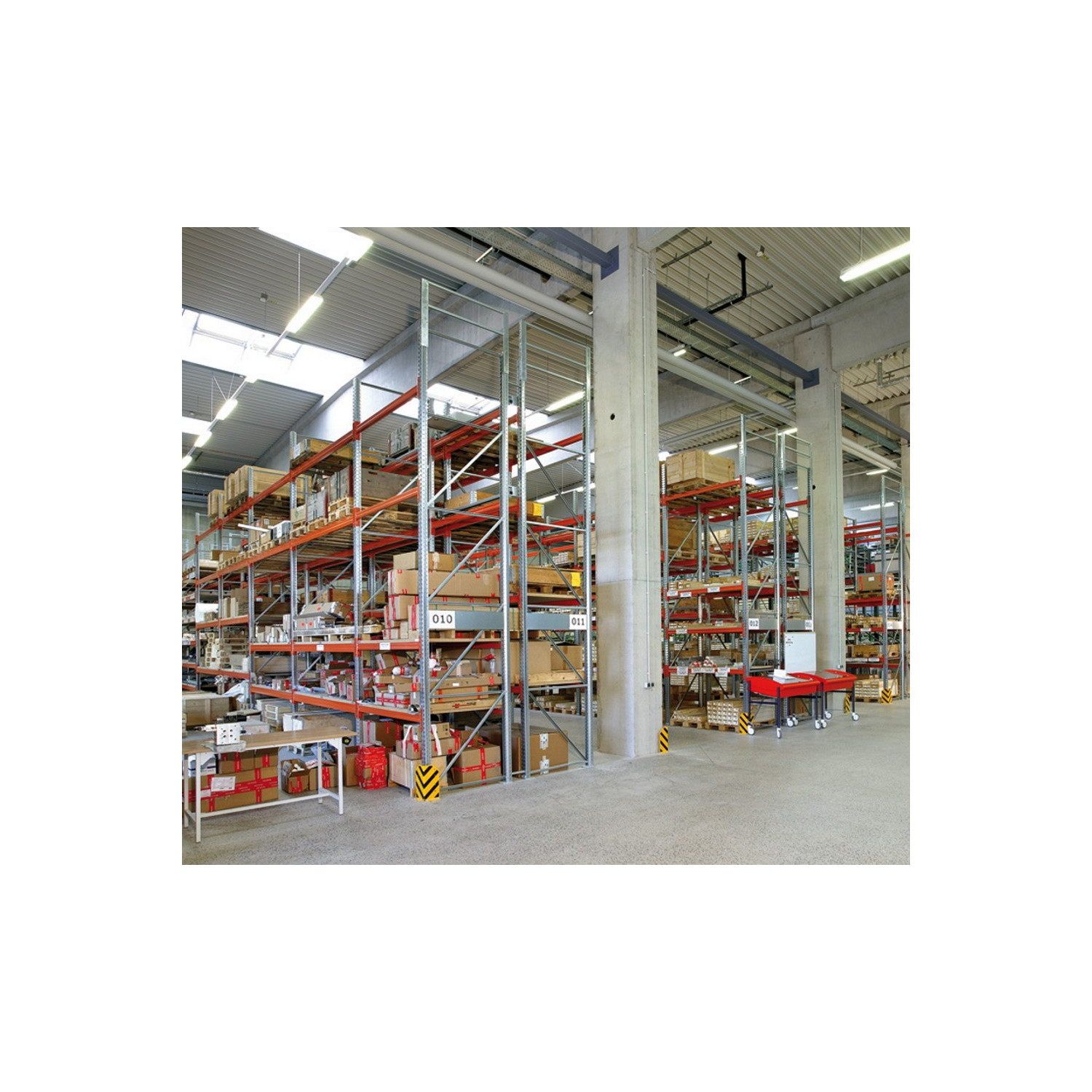 Die Fachlasten gelten bei gleichmäßiger Lastverteilung. Zusätzliche Fachebenen sind bis zur maximalen Feldlast möglich. Die angegebenen Fach- und Feldlasten gelten für Regaleinheiten mit mindestens vier Regalfeldern bei Einsatz von mindestens zwei Holmpaaren. Qualitäts-Merkmale entsprechend Berufsgenossenschaft DGUV 108-007. Permanente Werksprüfung nach DIN EN ISO 9001.