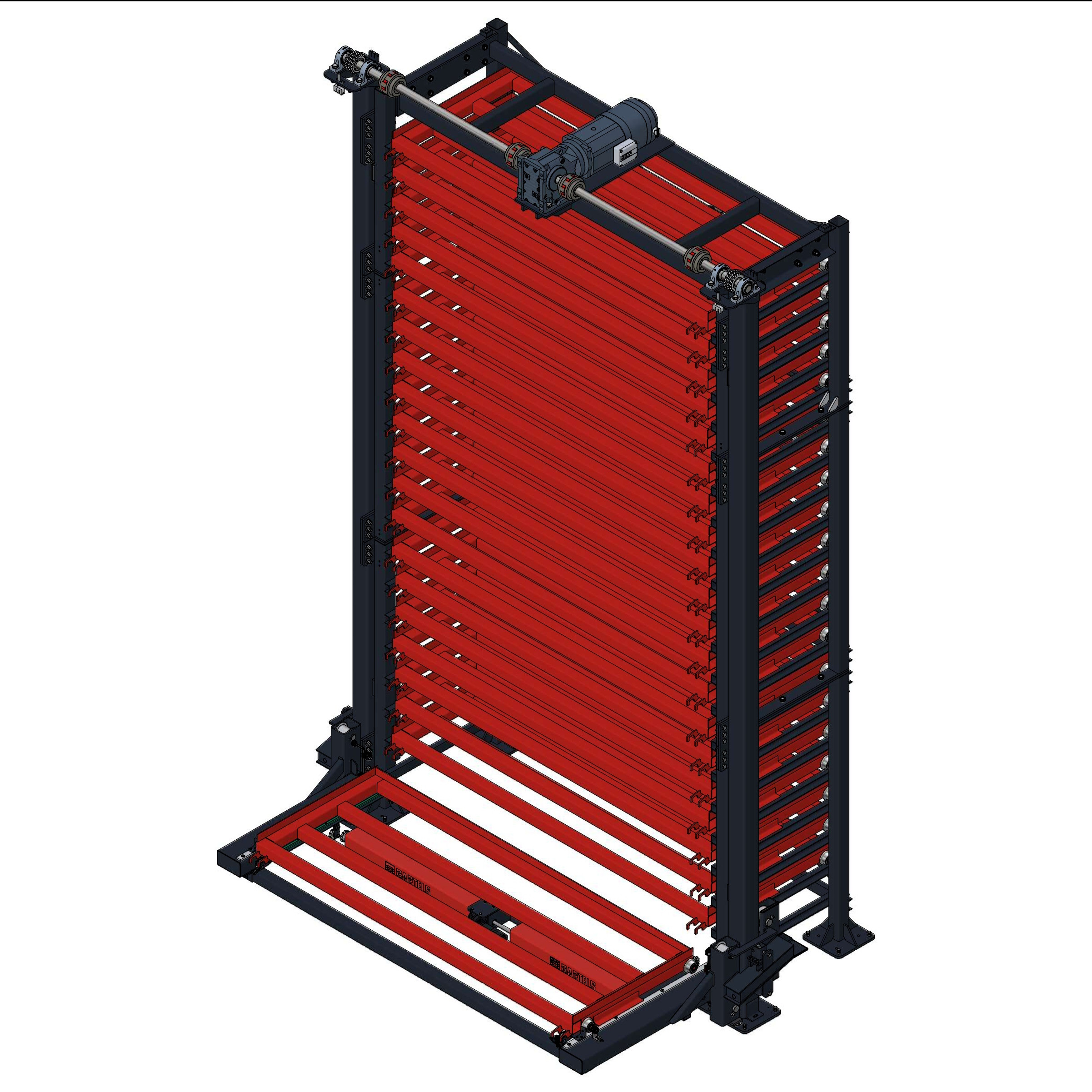 Bringen Sie Ihr Lager auf ein neues Level mit dem Automatic-Tower von Bartels. Vollkommende Höhenausnutzung unter sicheren Bedingungen, optimal geeignet für die Lagerung von Blechen und anderen Tafelmaterialien. Die Lifteinheit fährt auf Knopfdruck die gewünschte Kassette aus dem Regal heraus und senkt diese auf eine ergonomische Höhe ab. Nach der erfolgten Be- oder Entladung wird die Kassette automatisch wieder eingelagert. Ein umfangreiches Sensorik-Paket sorgt dabei für größtmögliche Sicherheit für den Bediener.
