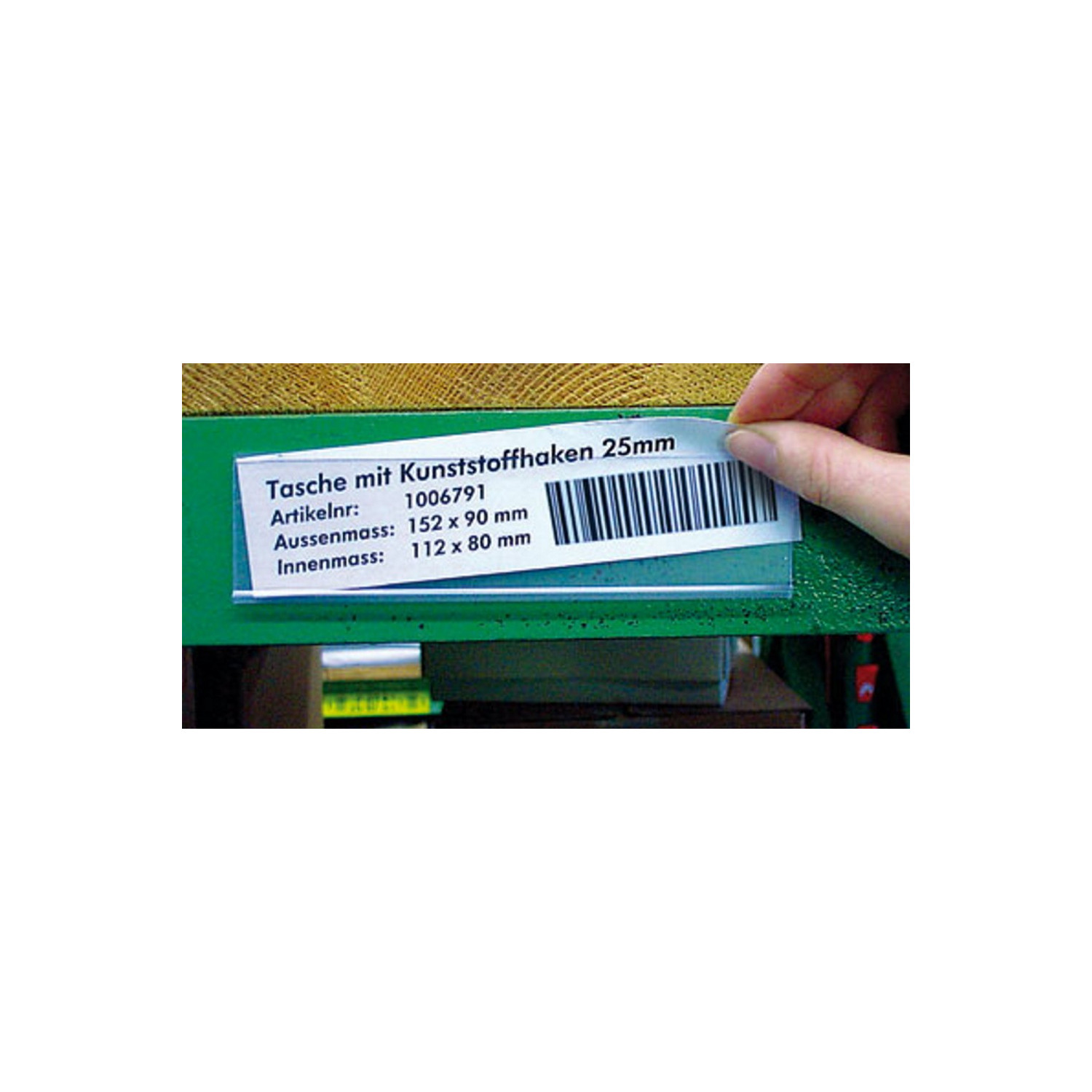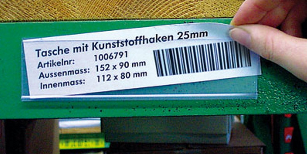 Papieretiketten, beschriftbar zur Einlage in selbstklebende Etikettenhalter.