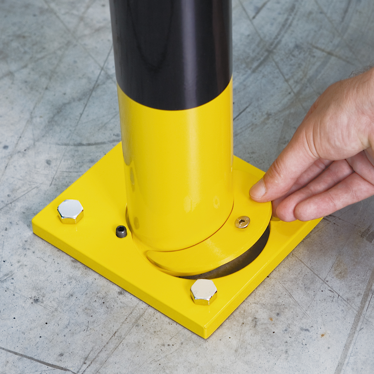 Durch die besondere Bodenplatte lässt sich der Rammschutz leicht demontieren. Ideal einsetzbar ist er auch für Bereiche, in denen ein hohes Beschädigungsrisiko vorliegt.