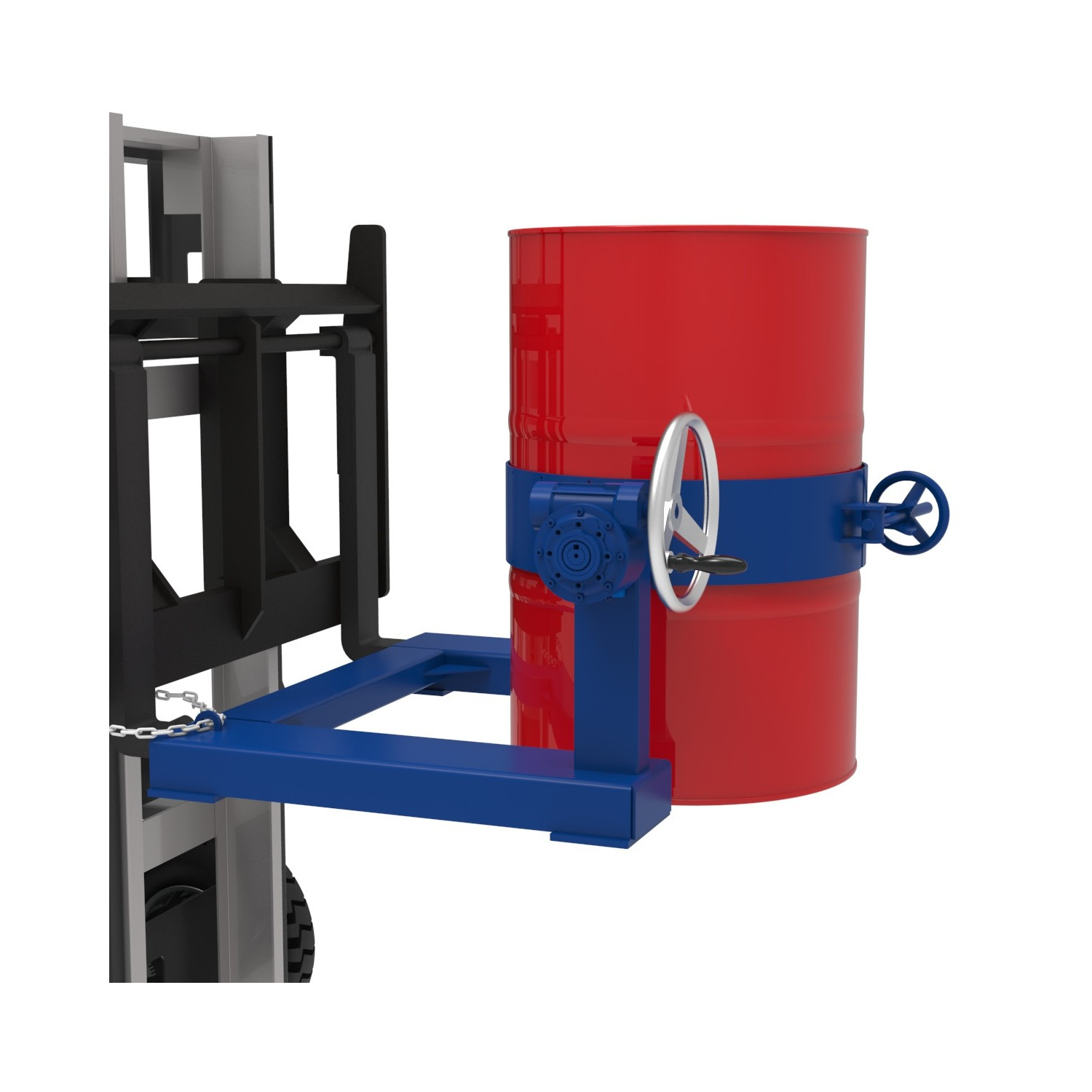 - Mit dem Fasskipper lassen sich Fässer einfach mit einem Stapler kippen und entleeren