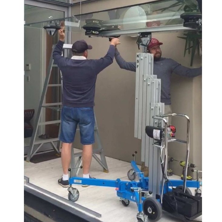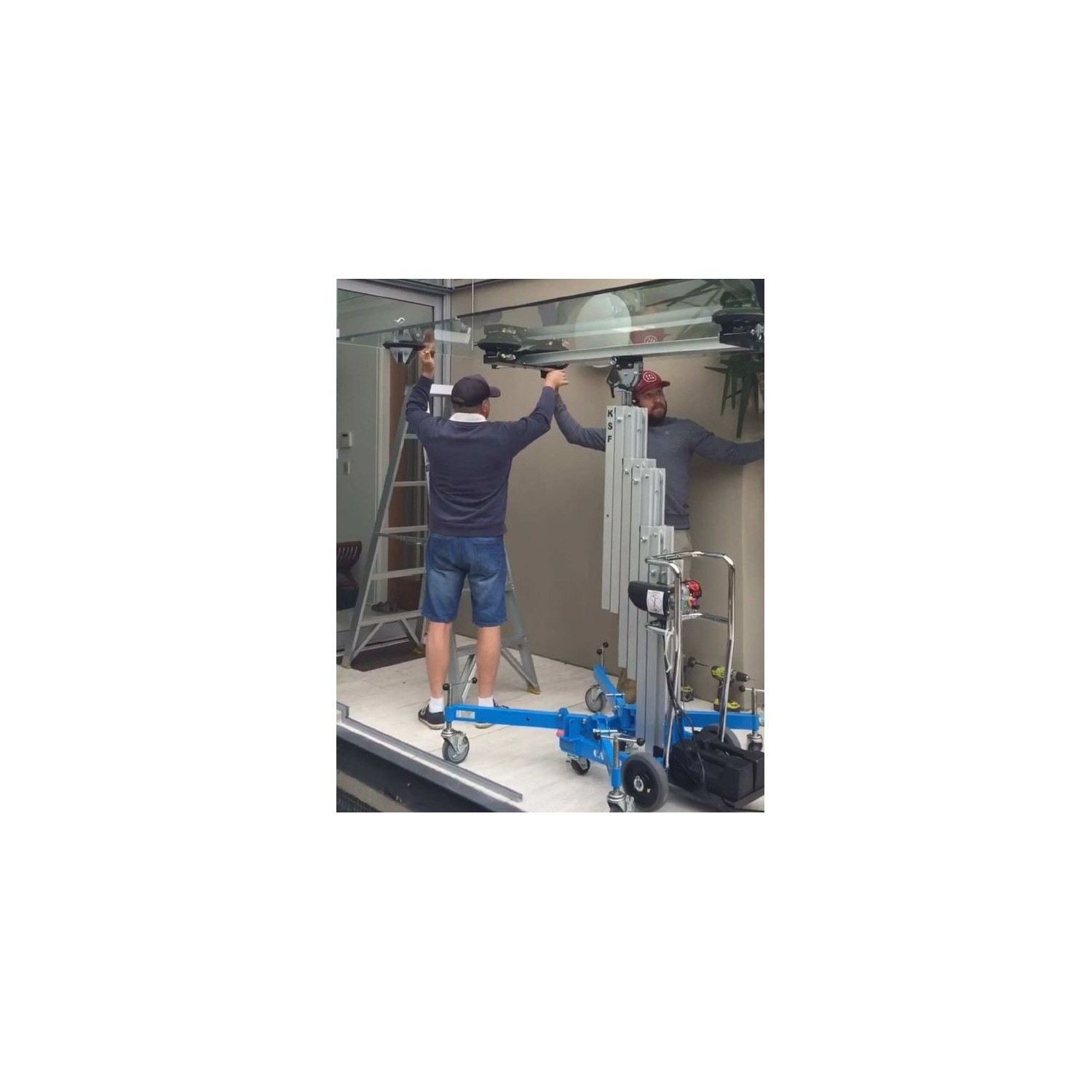 Der Glaslift besteht aus zwei Komponenten: dem Hebegerät und der Glasaufnahmevorrichtung. Dadurch, dass der Mast aus robustem Aluminium hergestellt wurde, ist er leicht und tragbar für den sofortigen Einsatz.