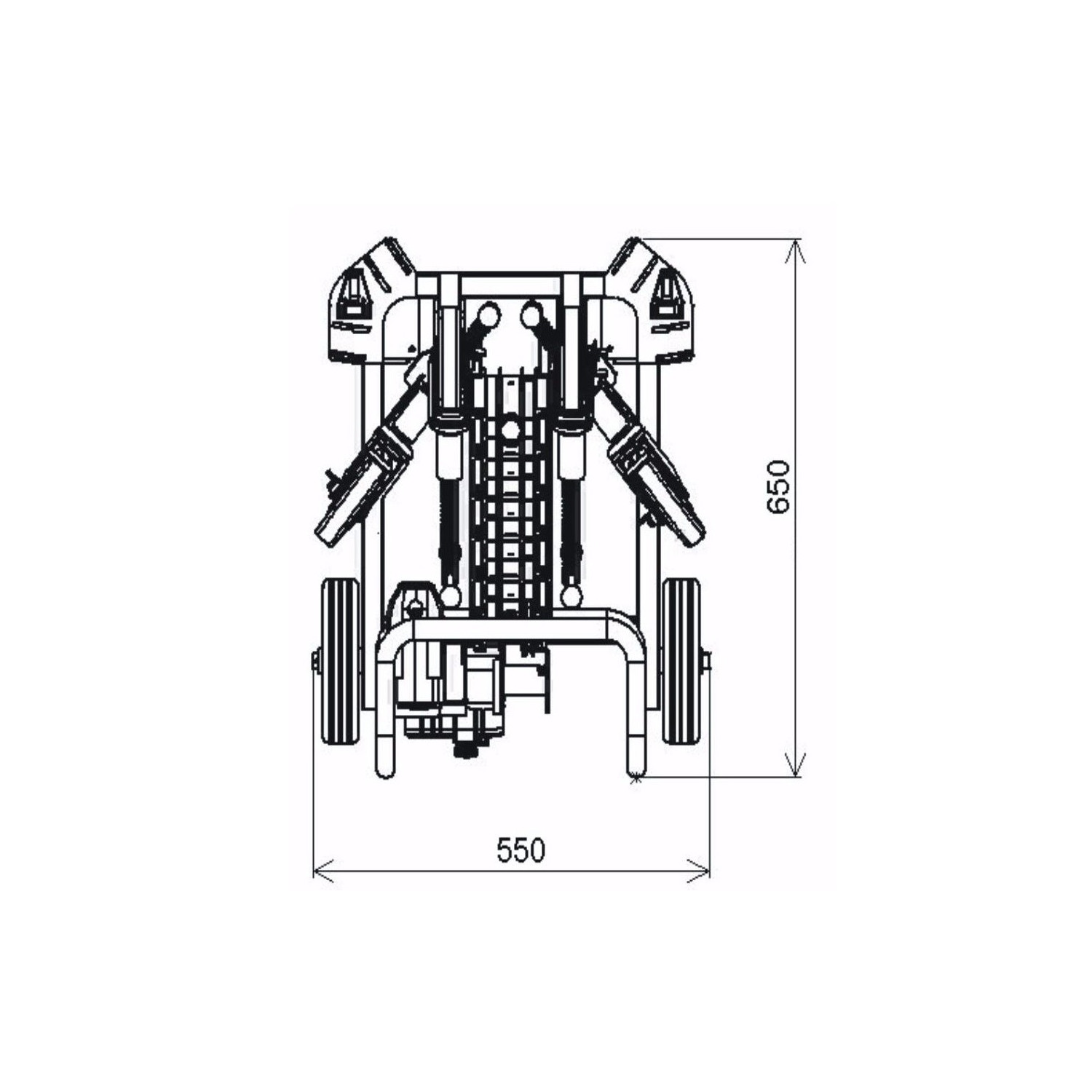 - Kann durch die 4 Stützen mit Rädern auch bei Unebenheiten eingesetzt werden