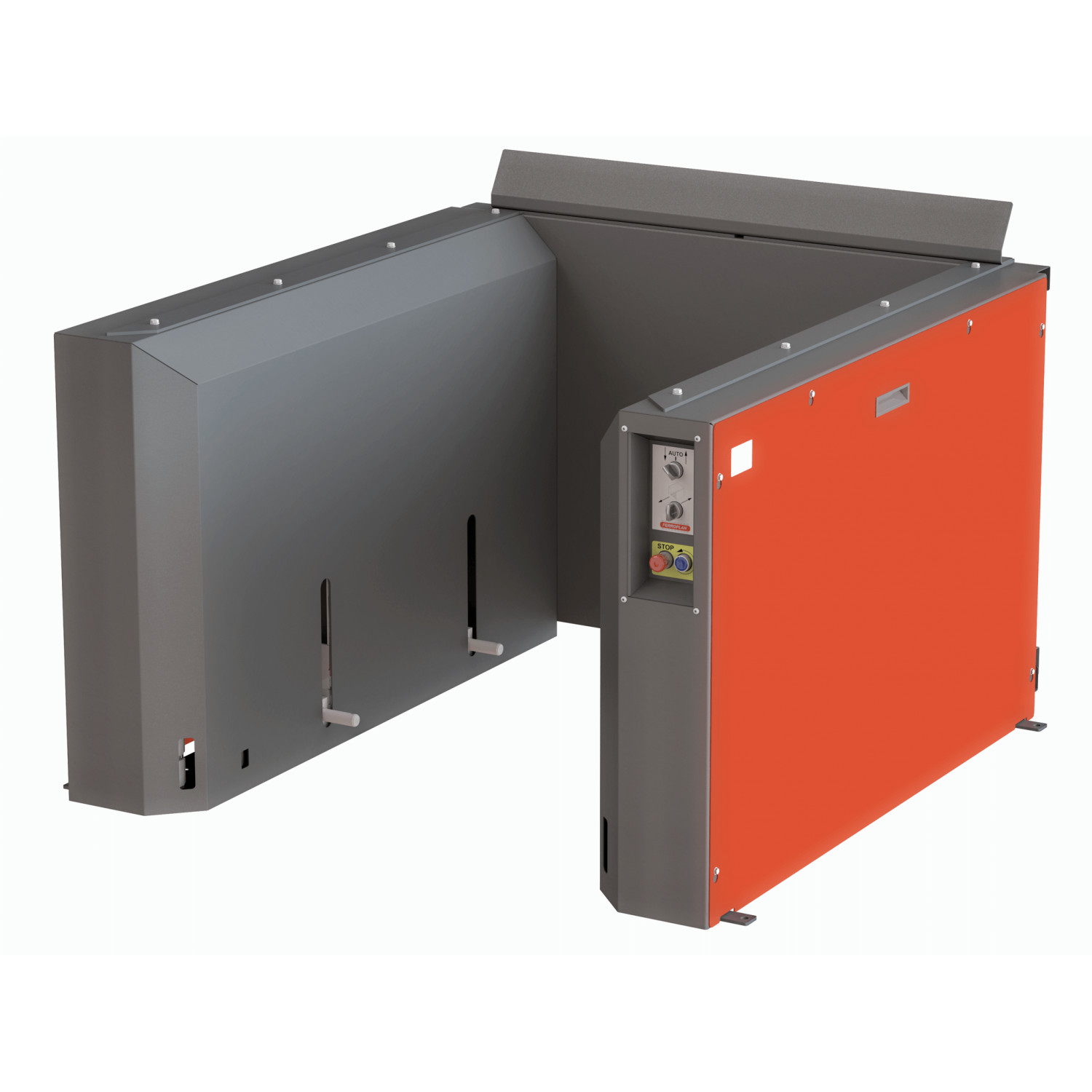 - Farbe: Dunkelgrau RAL 7024 mit roten Seitenwänden RAL 3020