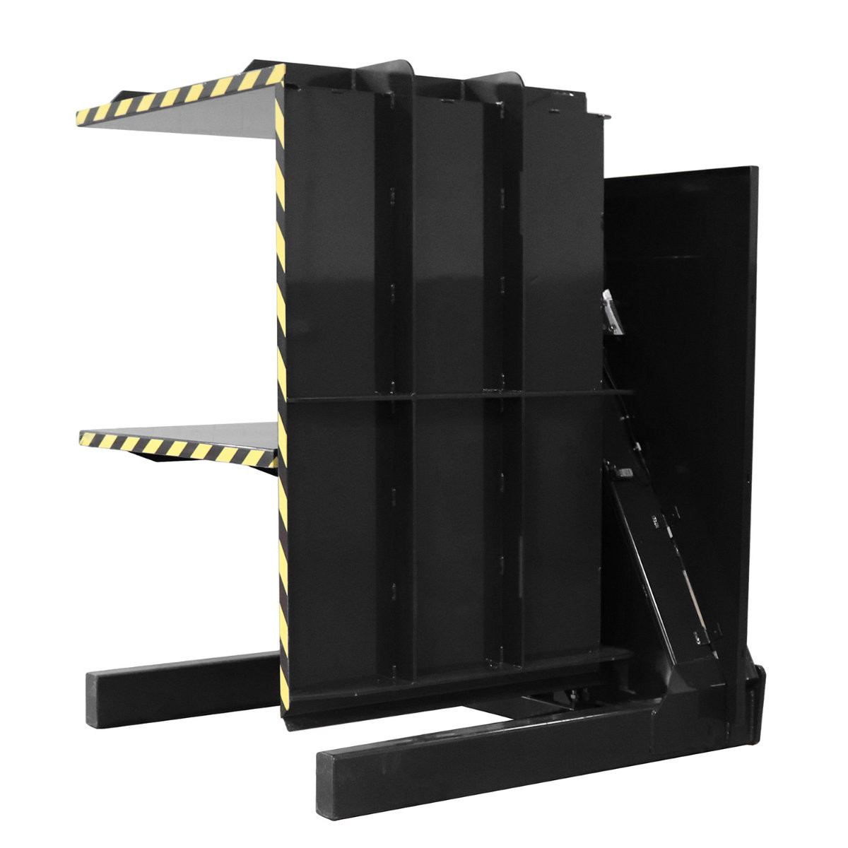 - Sicherheit: Umlaufender Schutzzaun auf beiden Seiten und der Rückseite des Palettenwenders