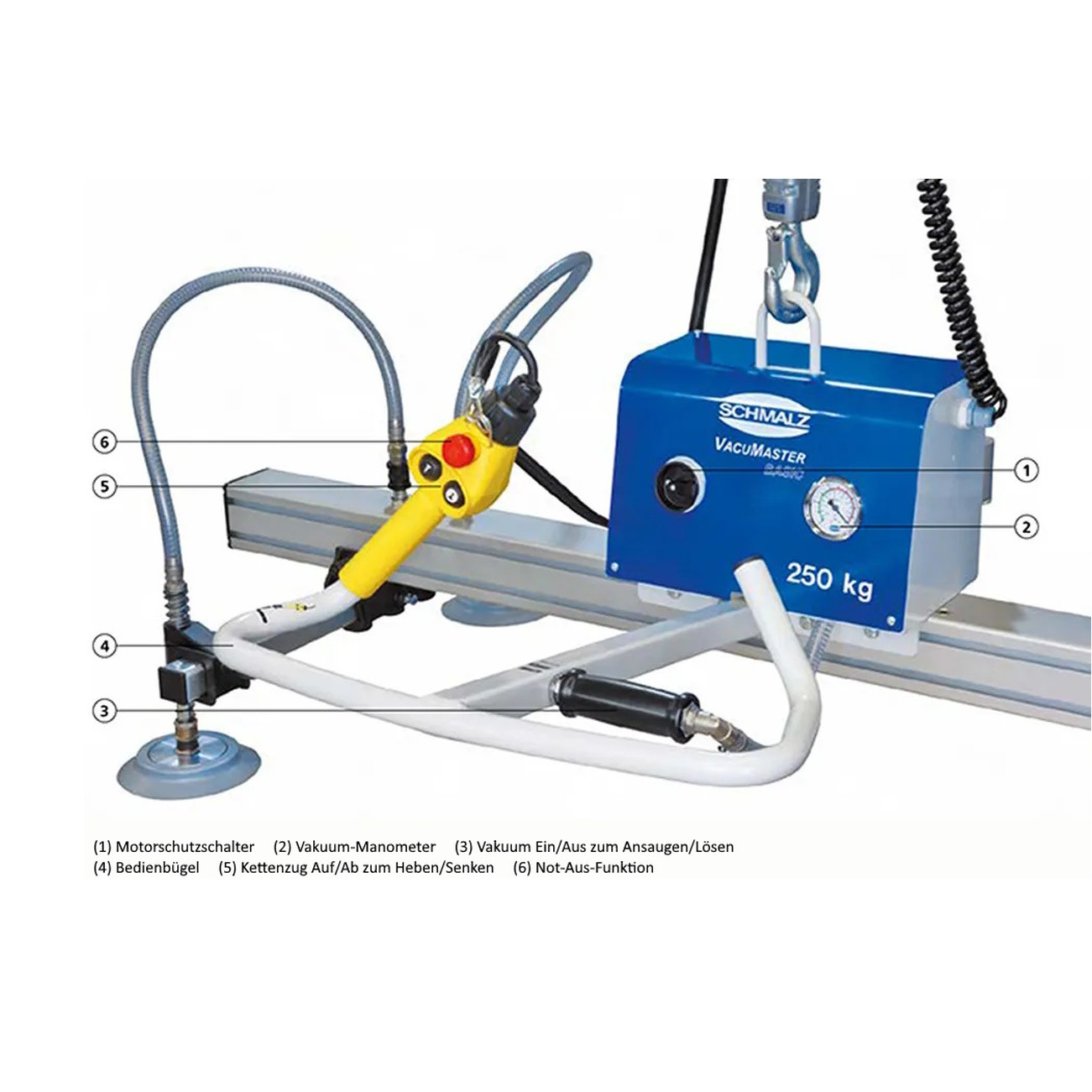 - Basismodul inkl. Vakuum-Erzeugung, Bedienbügel, Längstraverse, Quertraverse, Halter und Saugplatten