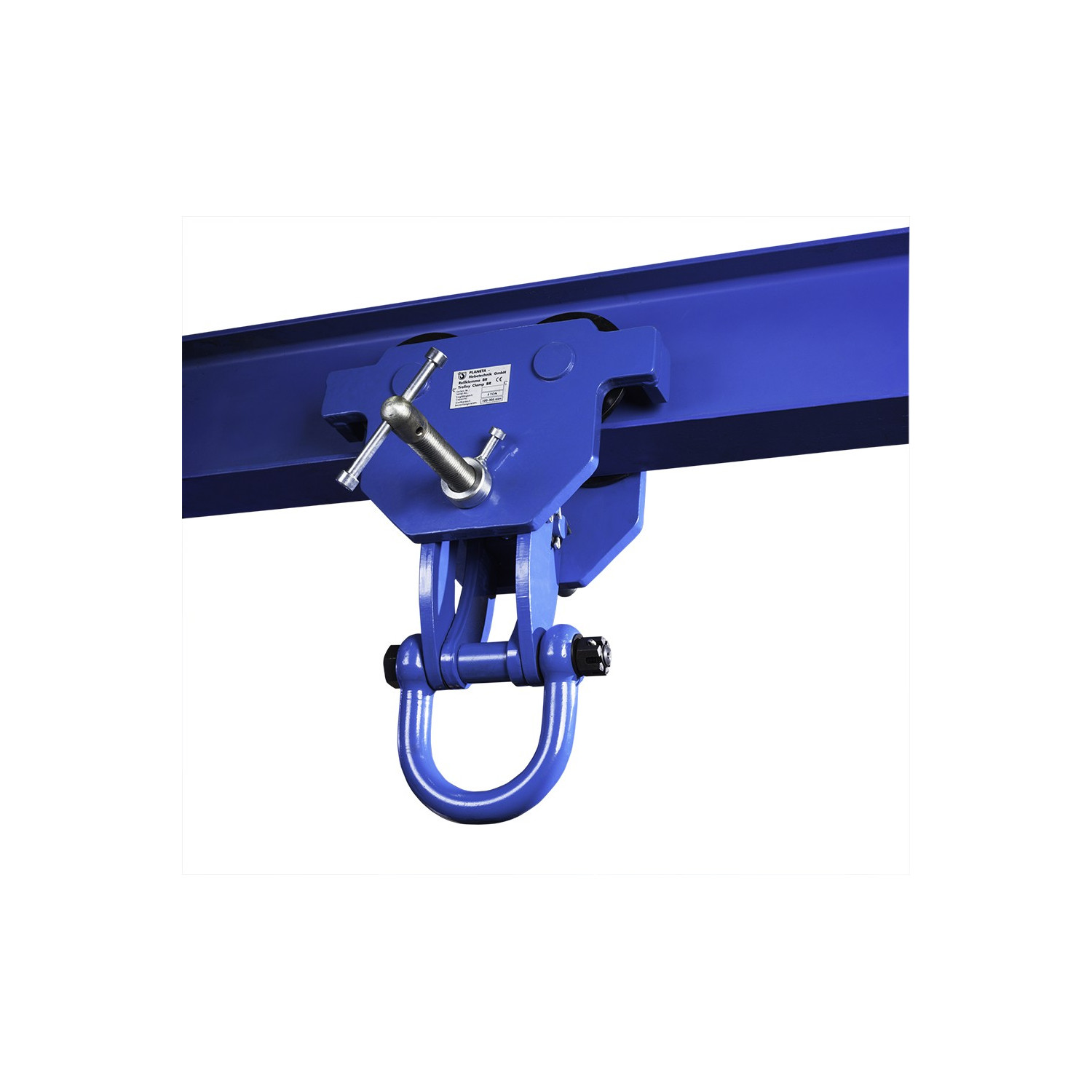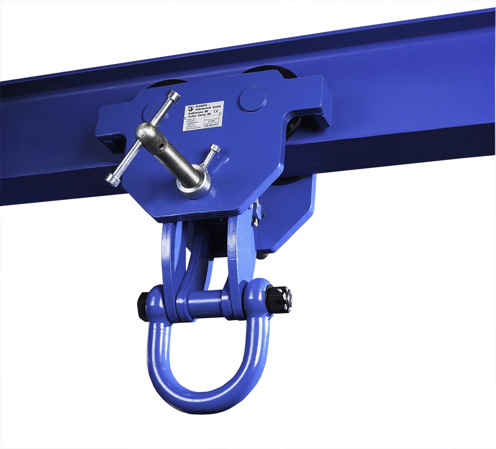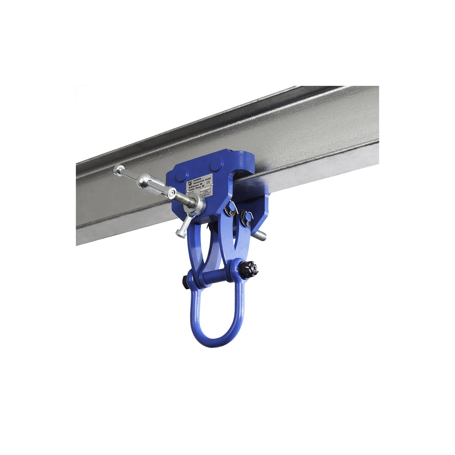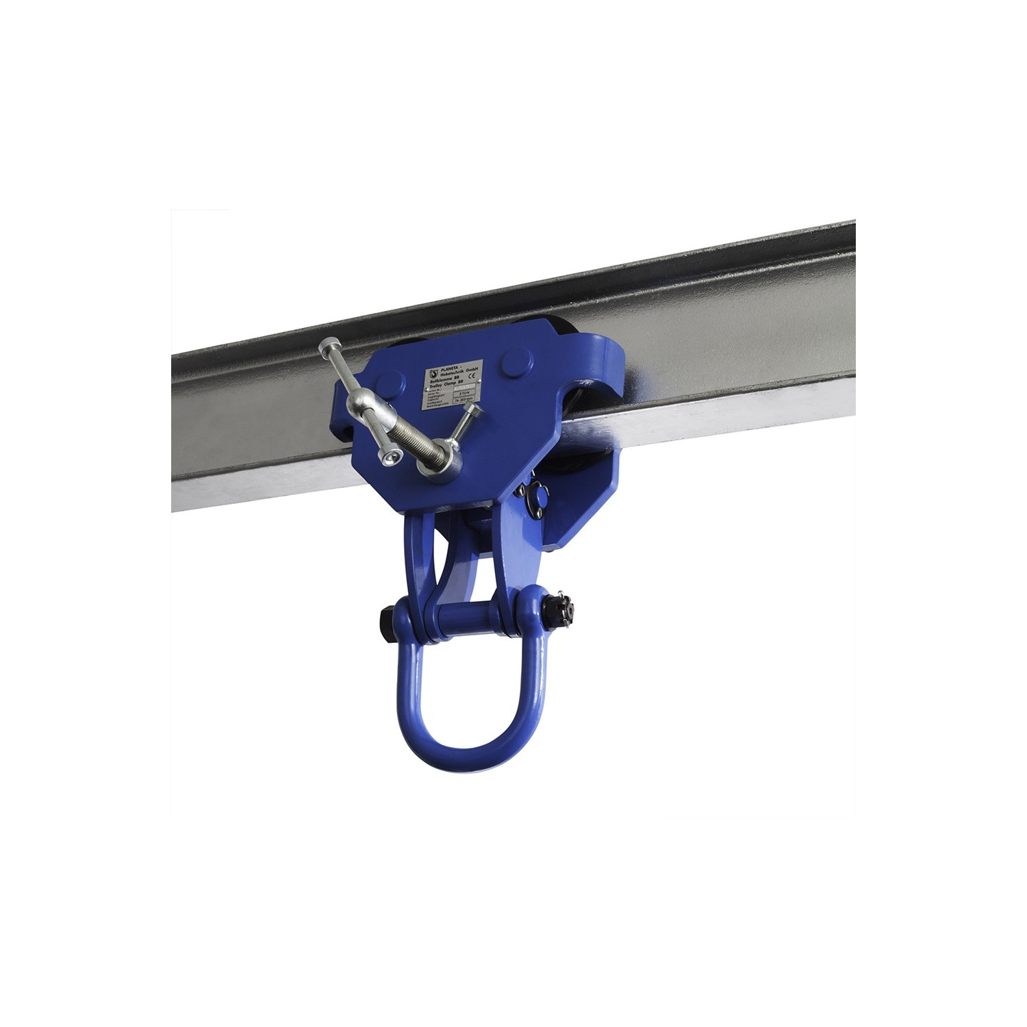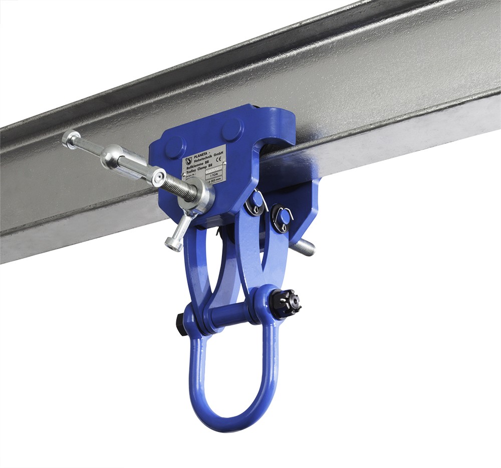 Die Trägerklemme mit Rollfahrwerk ist geeignet, Lasten an Deckenträgern anzuschlagen und zu verfahren. Dazu lässt sich die Klemme per Drehspindel auf die Trägerflanschbreite einstellen. Mechanisch bearbeitete Stahllaufrollen mit dauergeschmierten, gekapselten Kugellagern sorgen für einen optimalen Lauf.