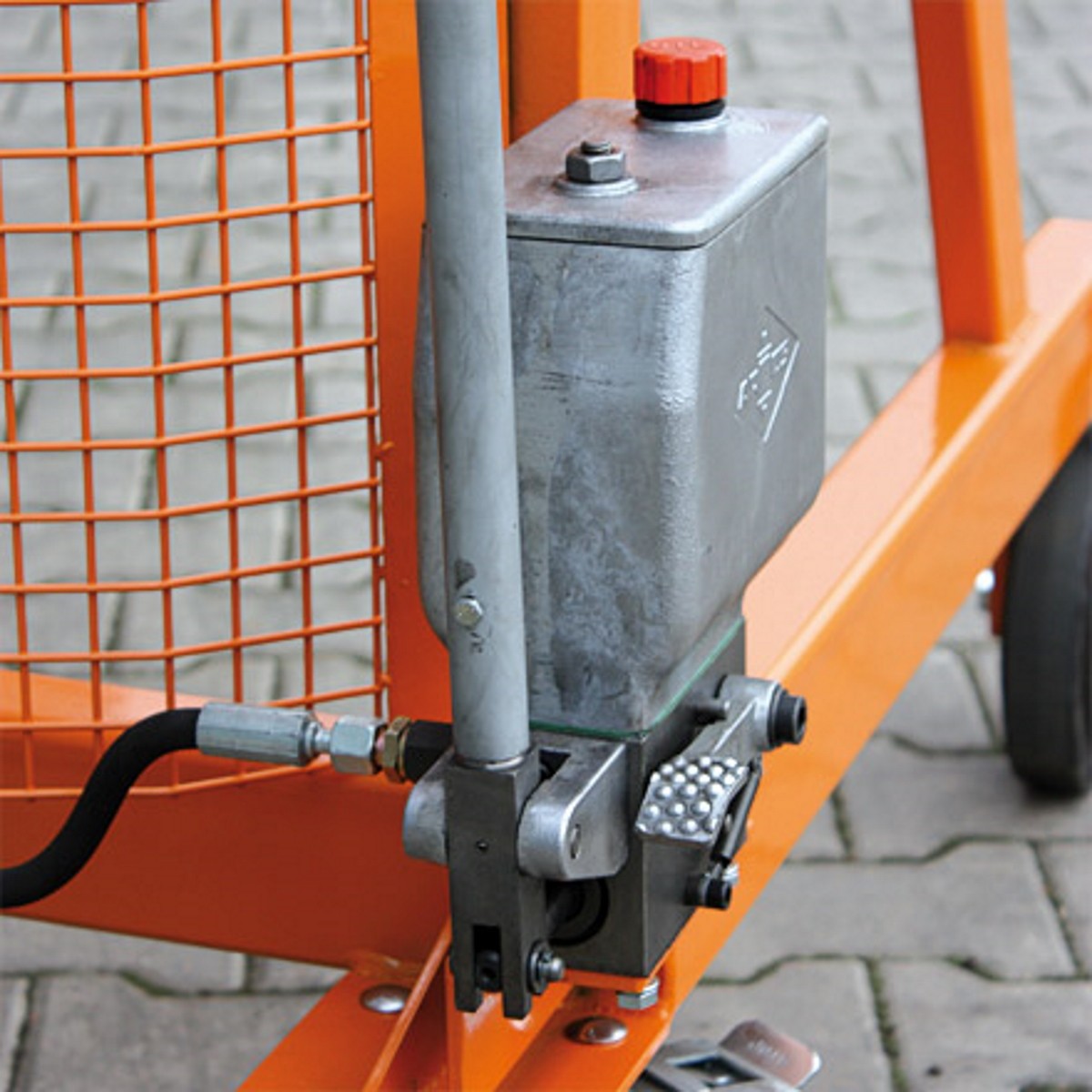 - Das Anheben der Fässer wird einfach mechanisch mit einer Handpumpe getätigt