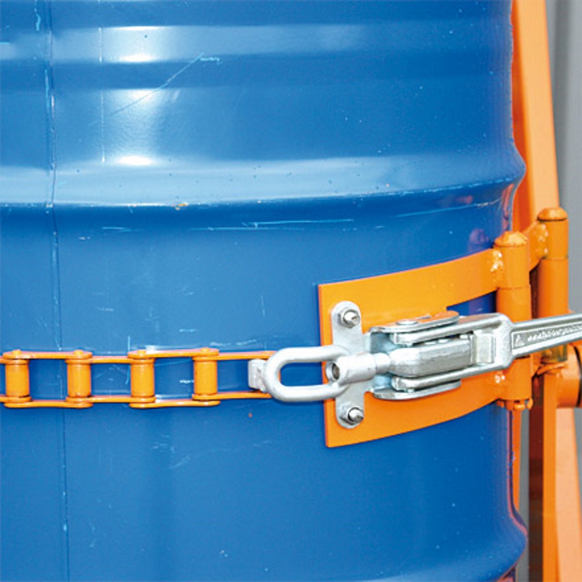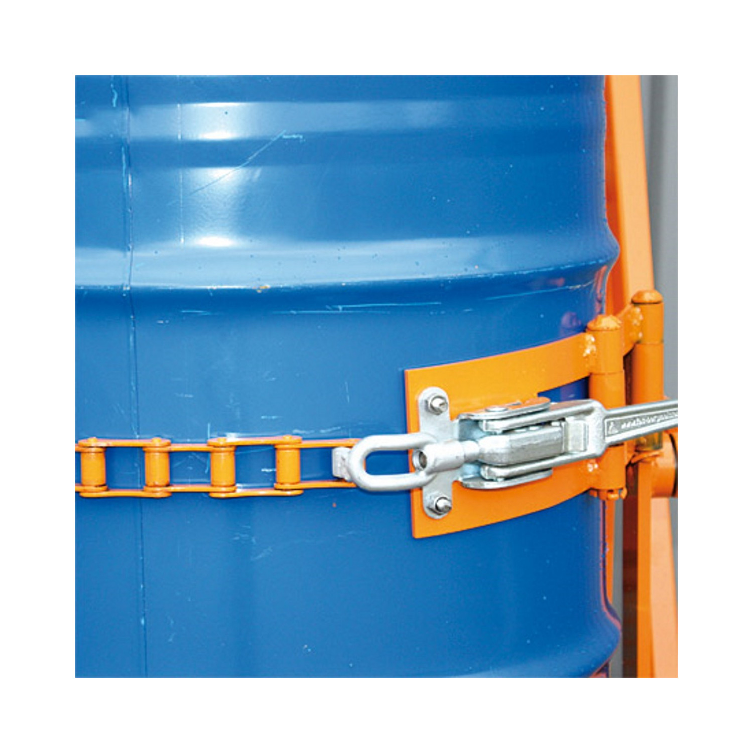 - Die Fässer werden sicher von Stahlriemen mit Exzenterverschluss gehalten
