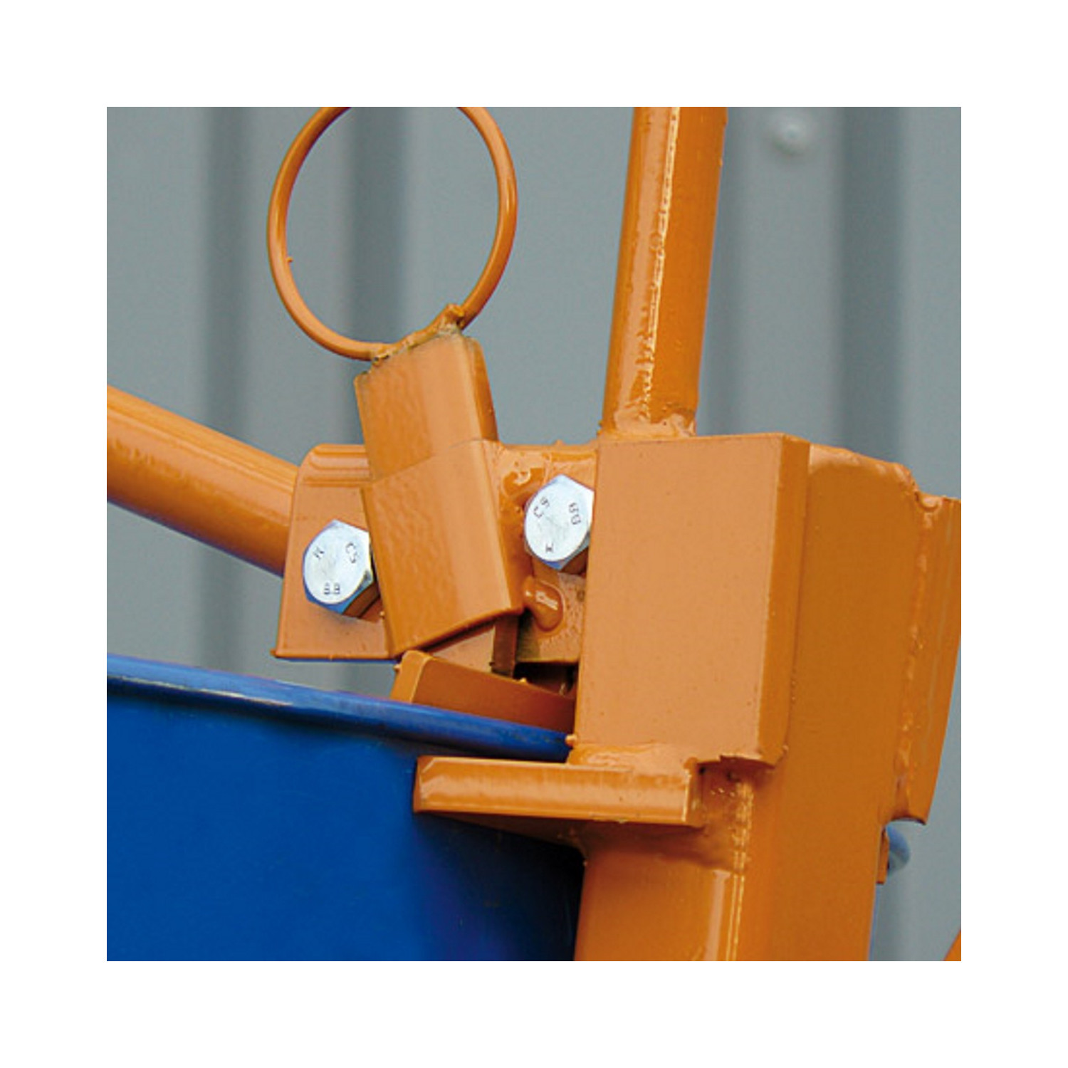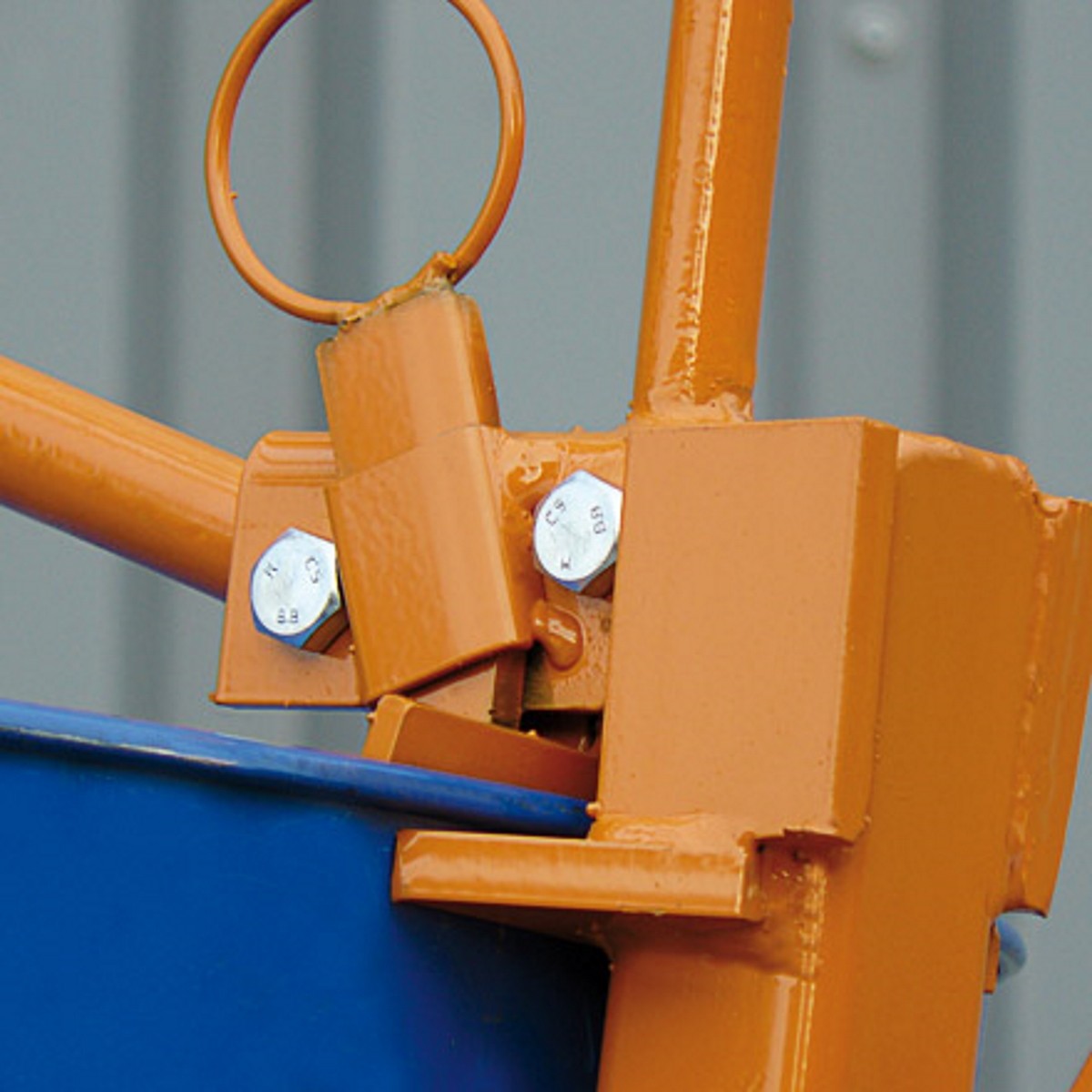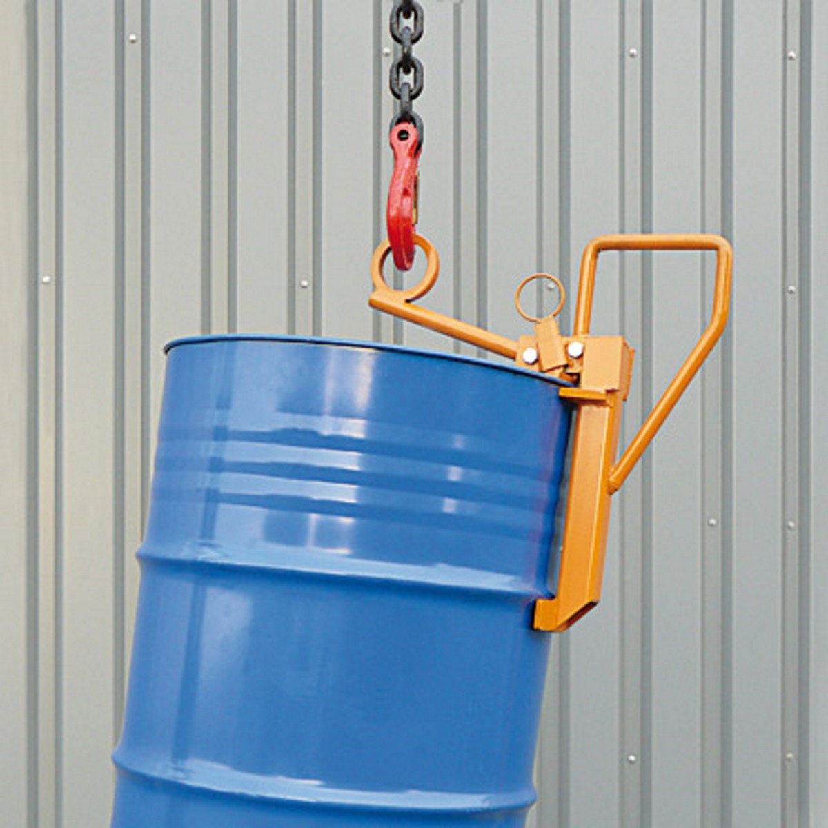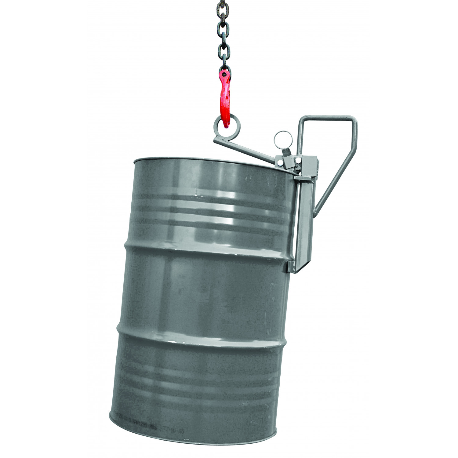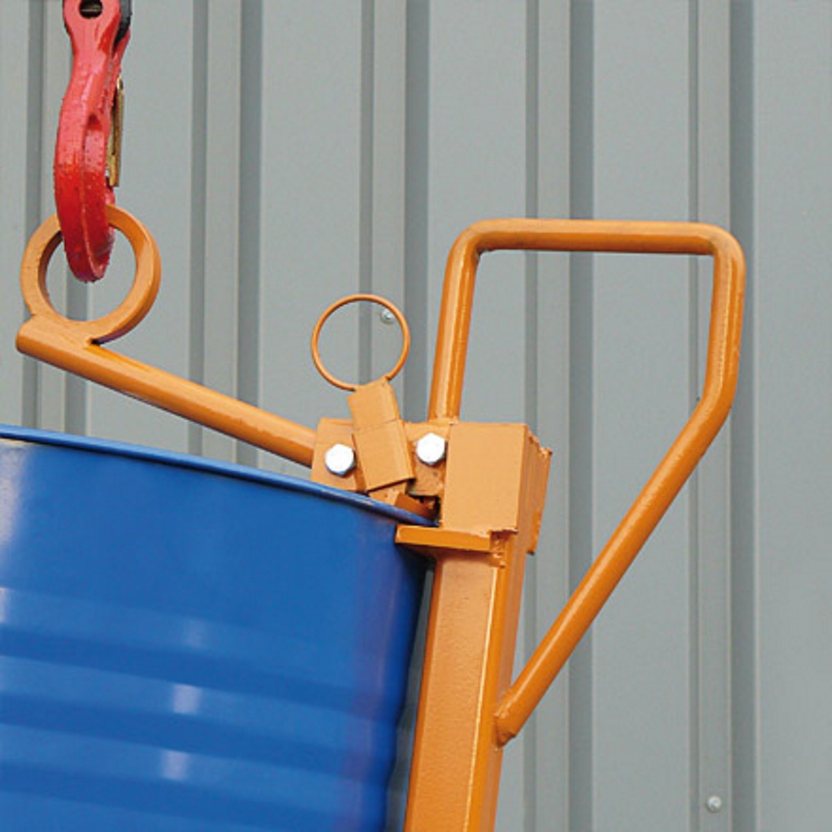 - Mit der Fassklemme lassen sich stehende, offene Stahlfässer mit Sicken ideal transportieren
