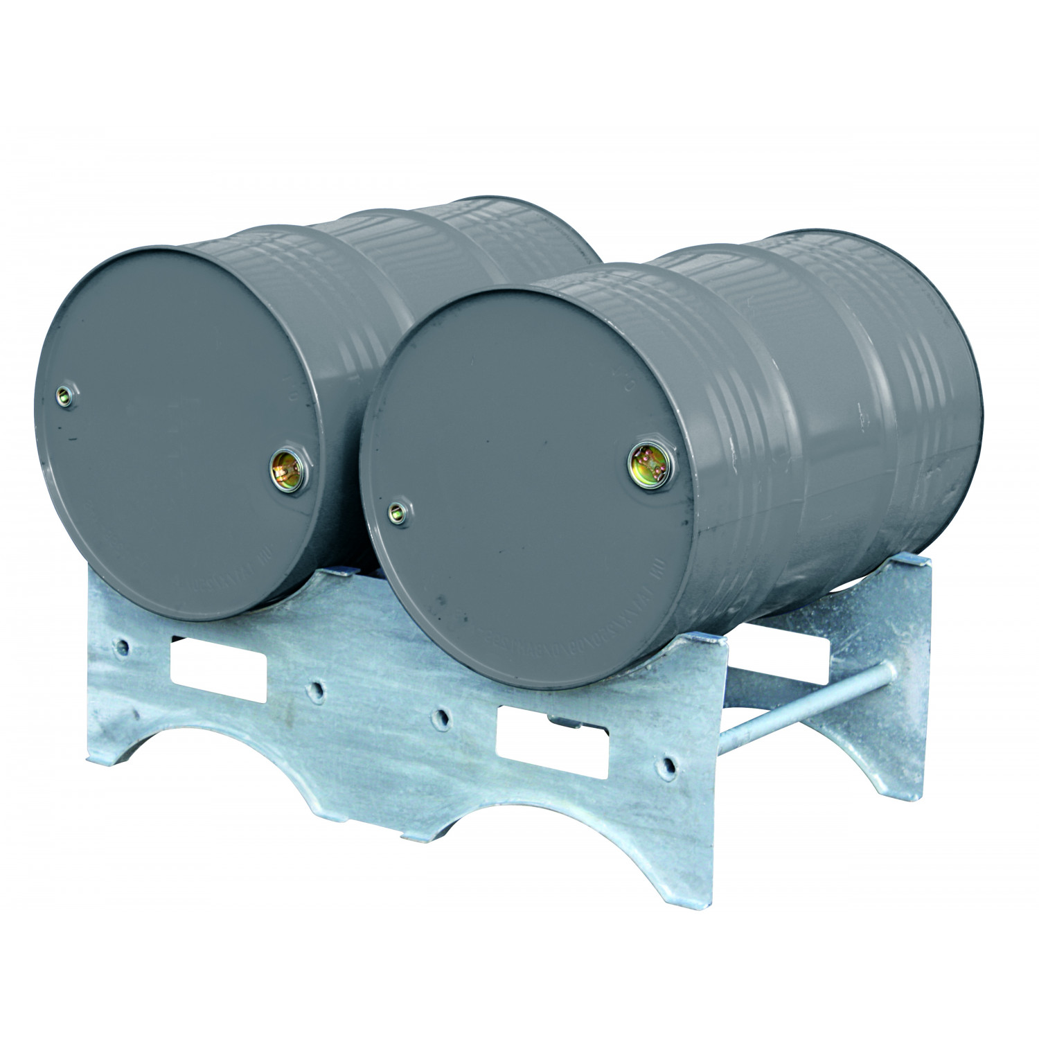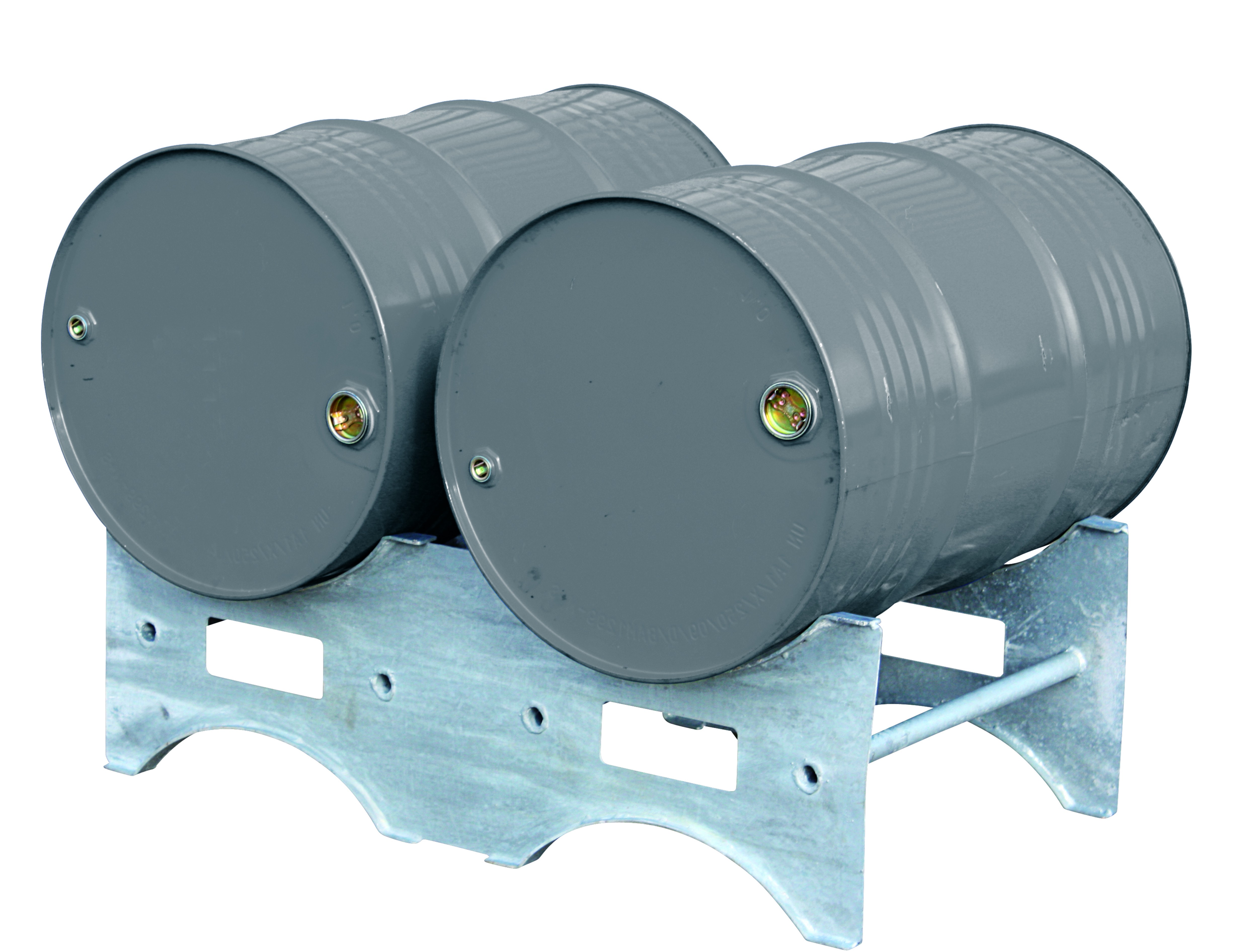 Die handliche und schnelle Lösung zum Lagern und Stapeln von Industriefässern: einfach waagrecht im Lot ausrichten, Fässer auflegen und mit weiteren Fasspaletten eine neue Reihe beginnen. Über die Einfahrtaschen können so auch 2 Fässer per Gabelstapler transportiert und versetzt werden. Verwindungsfreie und formstabile Konstruktion aus feuerverzinktem Stahl mit verstärkten Auflagekanten für 2 Fässer.