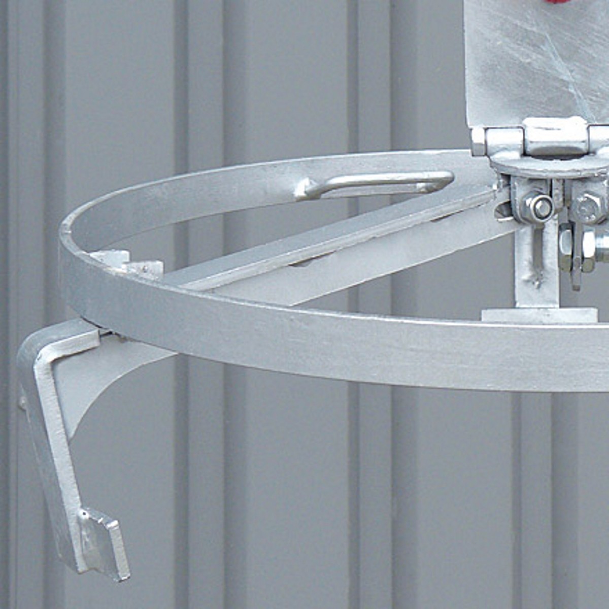 Stabile Ringtraverse für das Anheben von stehenden Fässern von oben. So können Fässer in oder aus vertikalen Behältnissen oder an schwer zugängigen Lagerplätzen punktgenau ein- oder ausgehoben werden.