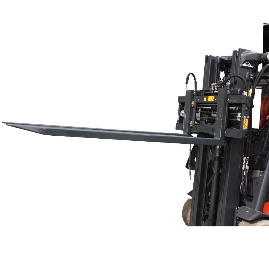 - Abgeschrägte Gabelspitze, keine Kanten und Ecken für ein schnelles und sicheres Einfahren in Paletten